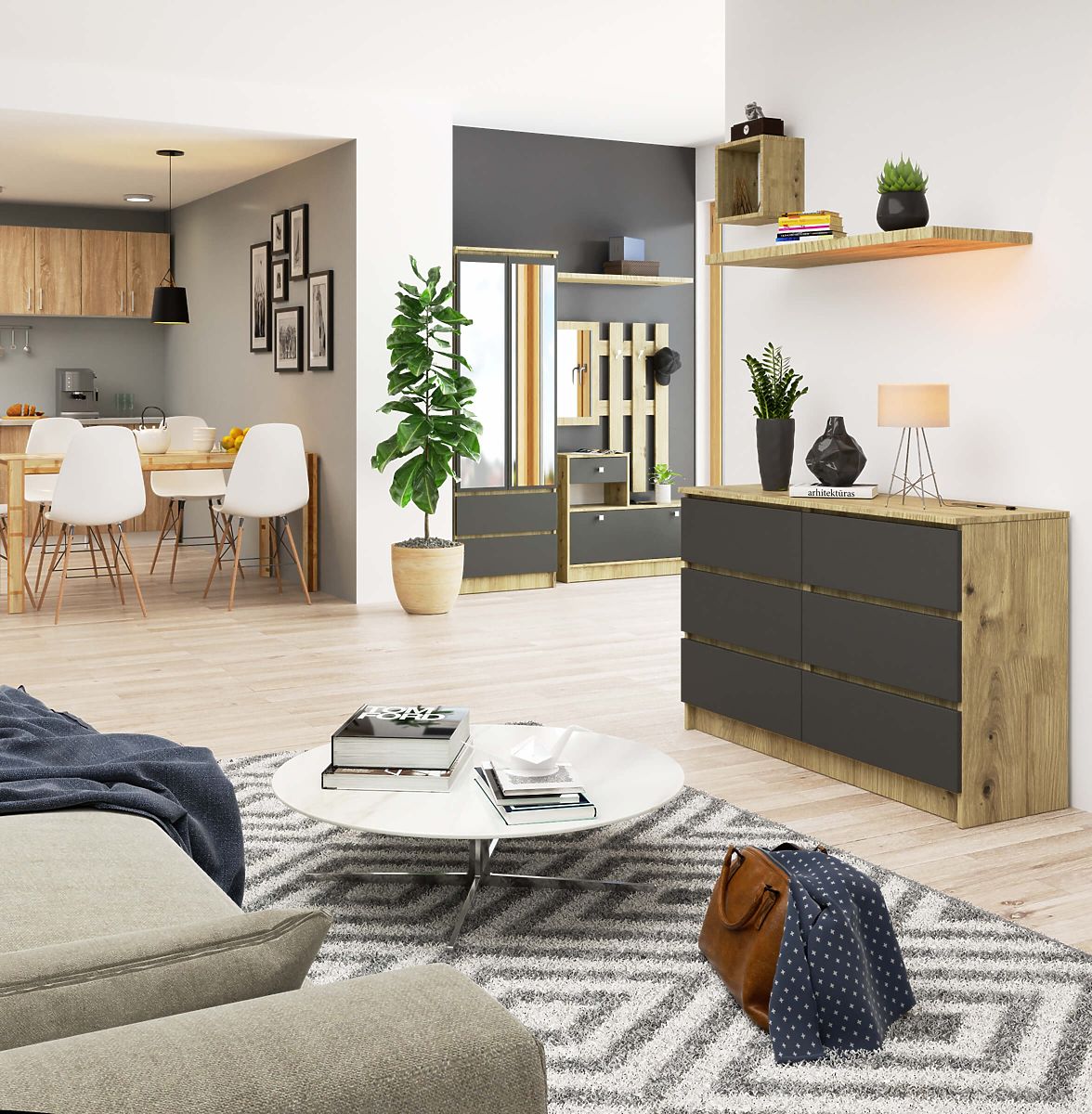 Komoda s 6 zásuvkami v kombinácii dub artisan a grafit šedá. .. viac