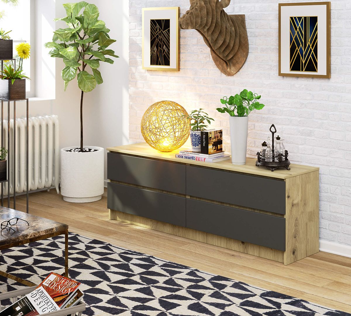 Komoda s 4 zásuvkami z laminovanej dosky v odtieni Dub Artisan a Šedá. .. viac