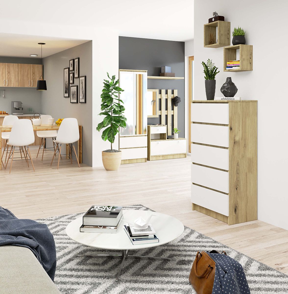 Babynabytek.sk » Detský nábytok / Komody a skrine / Komody / KOMODA K60 5SZ CLP PK DUB ARTISAN / BIELA