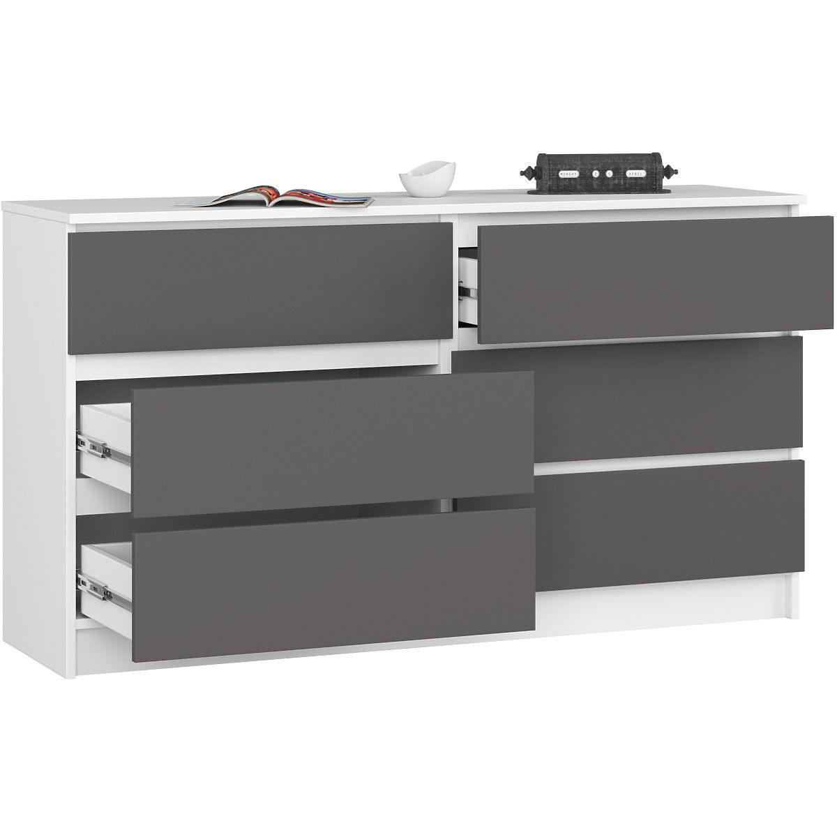 Babynabytek.sk » Detský nábytok / Komody a skrine / Komody / Komoda K 140 cm 6 zásuviek PK biela-grafitová sivá