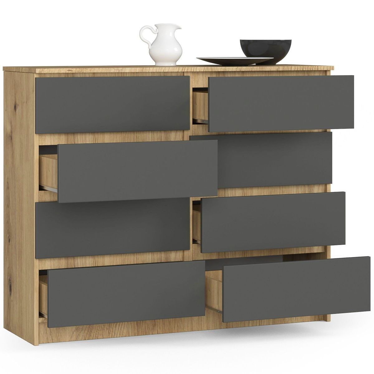 Babynabytek.sk » Detský nábytok / Komody a skrine / Komody / KOMODA K120 8SZ CLP PK DUB ARTISAN / ŠEDÁ