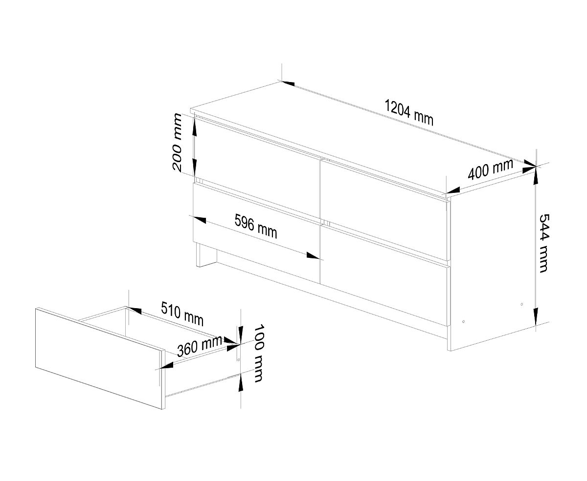 Komoda s 4 zásuvkami z laminovanej dosky. .. viac