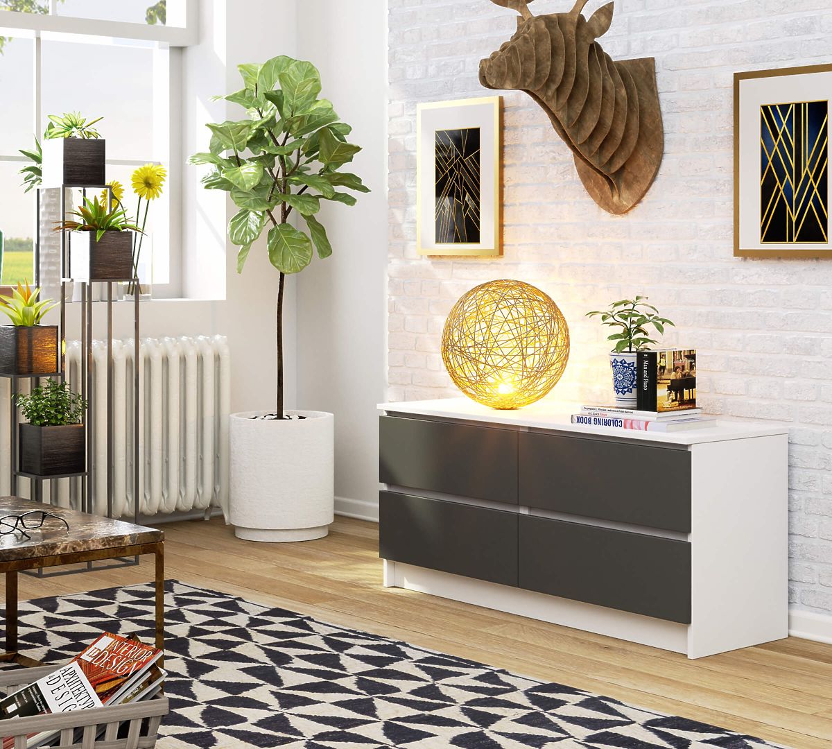 - Komoda vyrobená z laminovanej dosky odolnej proti oderu
