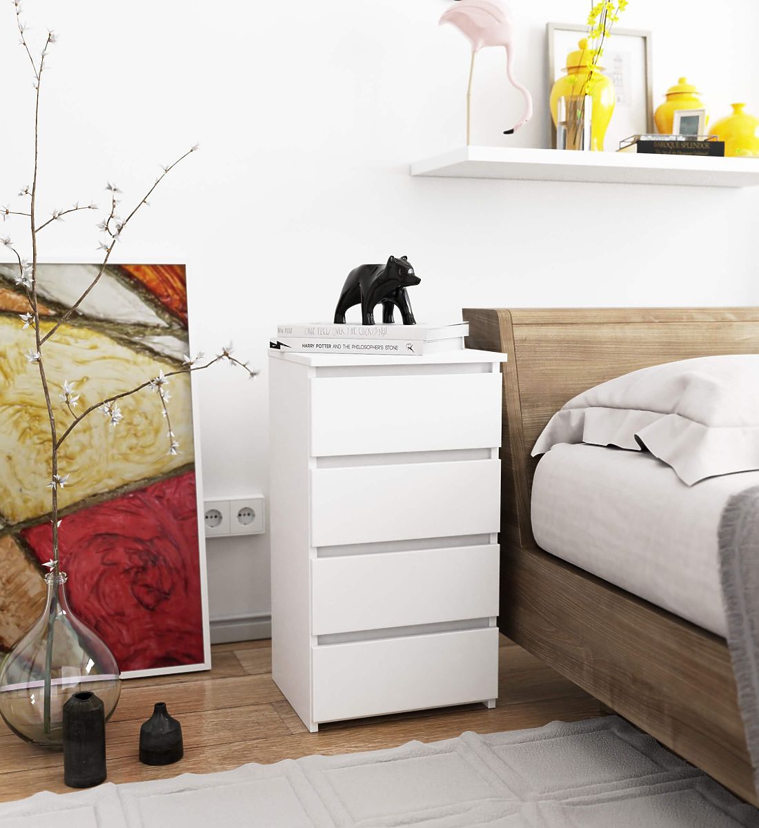 Komody sú obľúbeným typom nábytku, ktorý sa umiestňuje vedľa postele. Na jeho doske sa najčastejšie nachádza lampička, zatiaľ čo vo vnútri sú predmety uľahčujúce odpočinok a spánok. Tí, ktorí hľadajú elegantnú komodu, by mali venovať pozornosť komode CL4 40 cm v bielej farbe. Bude sa krásne vynímať v každej spálni. Možno ju umiestniť aj do detskej izby.