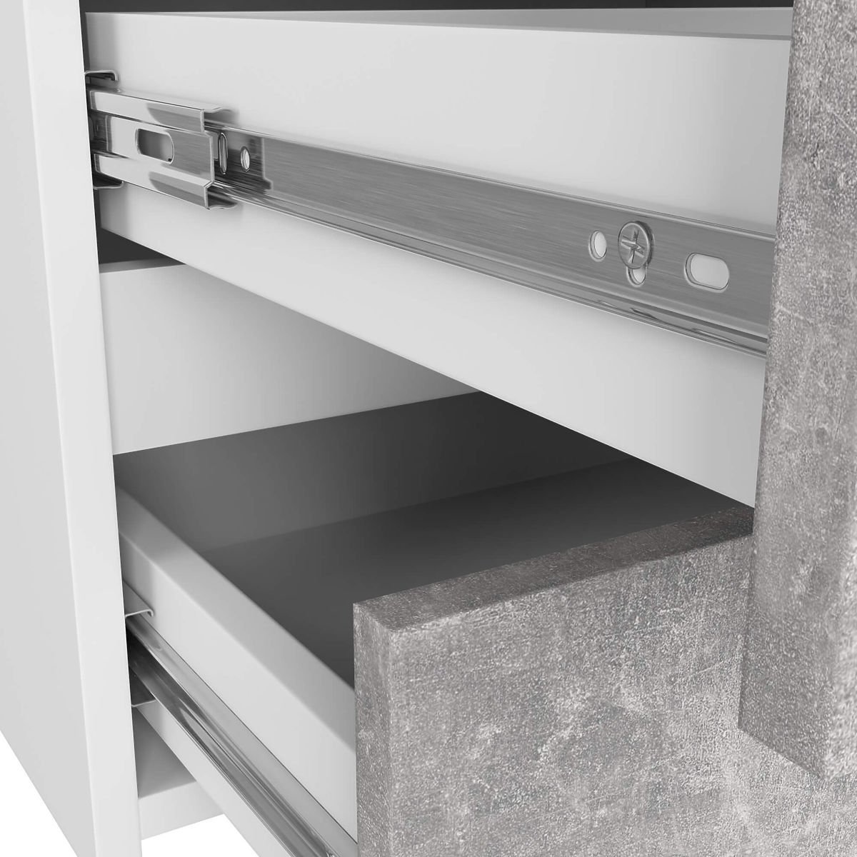 - Zásuvky sa pohybujú na kovových guľôčkových pojazdoch - Hrany olepené ABS hranou zabezpečujúcou vysokú ochranu proti poškodeniu