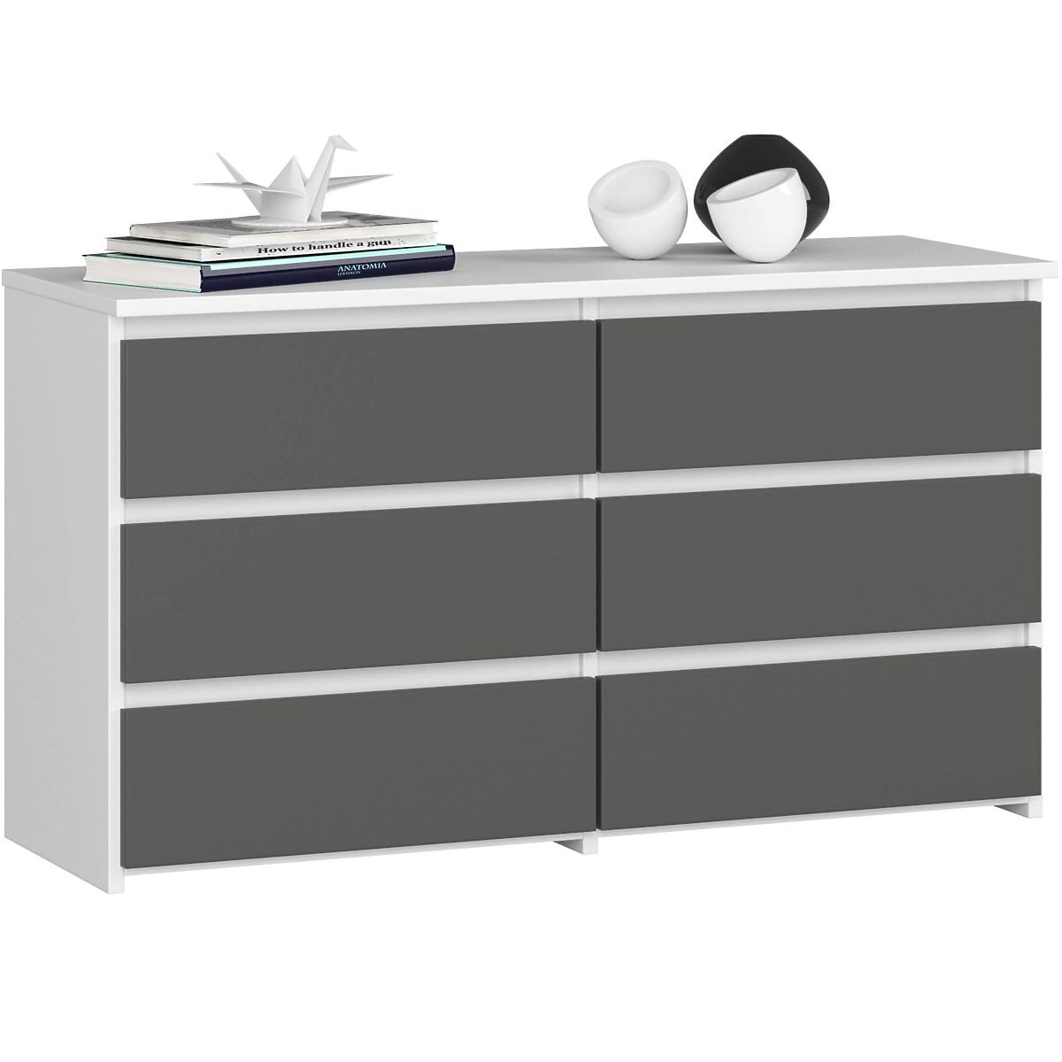 Praktická biela komoda s grafitovo šedými čelami a šiestimi zásuvkami. .. viac