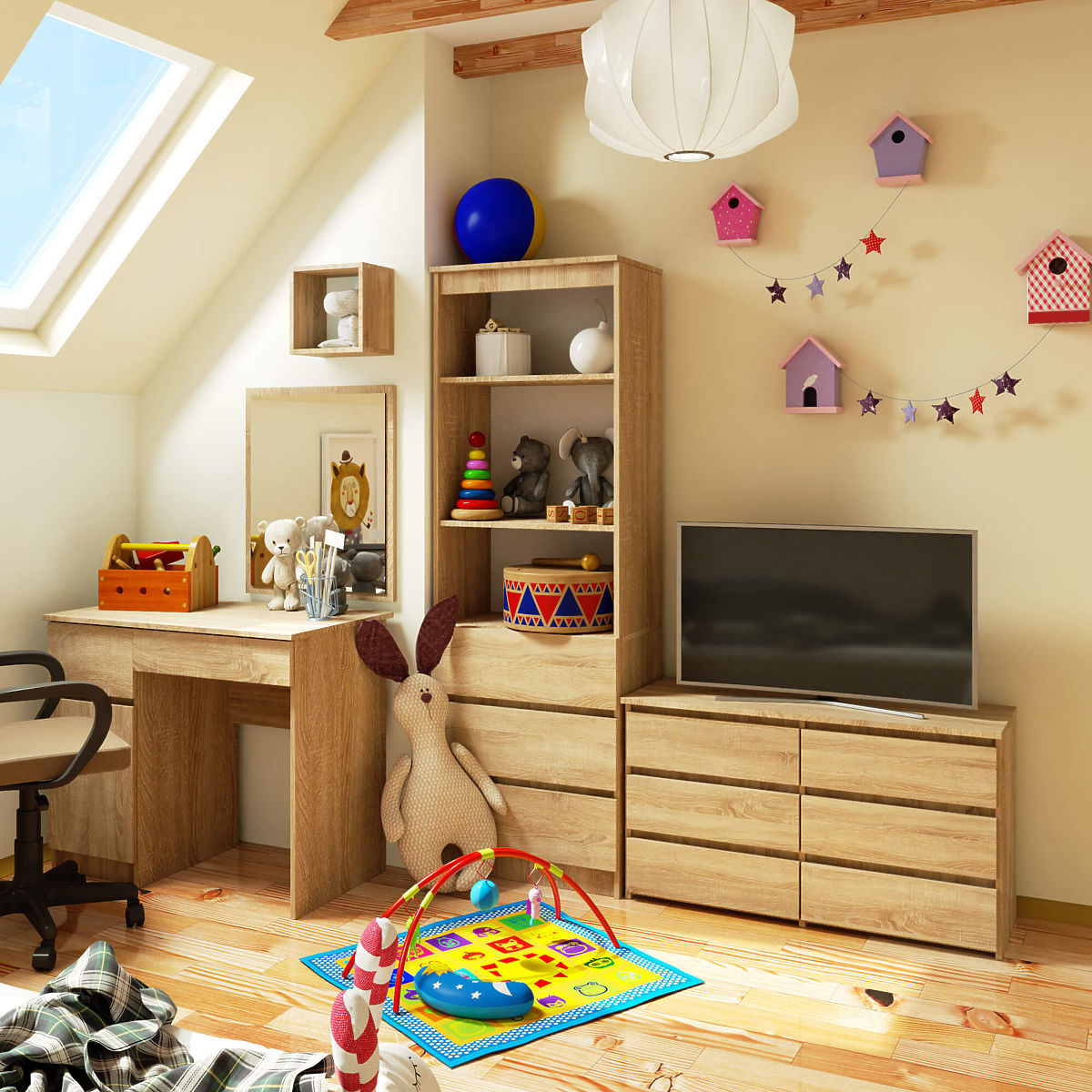 V nábytkárstve sa kladie zvláštny dôraz na funkčnosť produktov a ich vysoké estetické hodnoty. Skvelým príkladom je komoda CL 100 cm. Tento praktický kus nábytku je vyrobený z laminovanej dosky odolnej proti oderu, čo zaručuje jeho trvanlivosť a odolnosť. V šiestich priestranných zásuvkách sa zmestia rôzne knihy, dokumenty alebo drobnosti. Niektorí z našich zákazníkov sa rozhodujú pre ukladanie oblečenia alebo spodnej bielizne. Komoda dub sonoma má elegantný dizajn. Jednoduchá forma a elegantné prevedenie sa hodí ako do klasických a elegantných interiérov, tak aj do romantických. Tento výnimočný kus nábytku sa perfektne hodí do štýlovej obývačky aj útulnej spálne. Býva tiež využívaný ako súčasť šatníka alebo predsiene. Komoda so 6 zásuvkami je oceňovaná ako jednotlivcami, tak podnikateľmi. Vďaka bezchybnému vzhľadu a neobyčajnej kapacite sa skvele hodí ako súčasť vybavenia kancelárií.