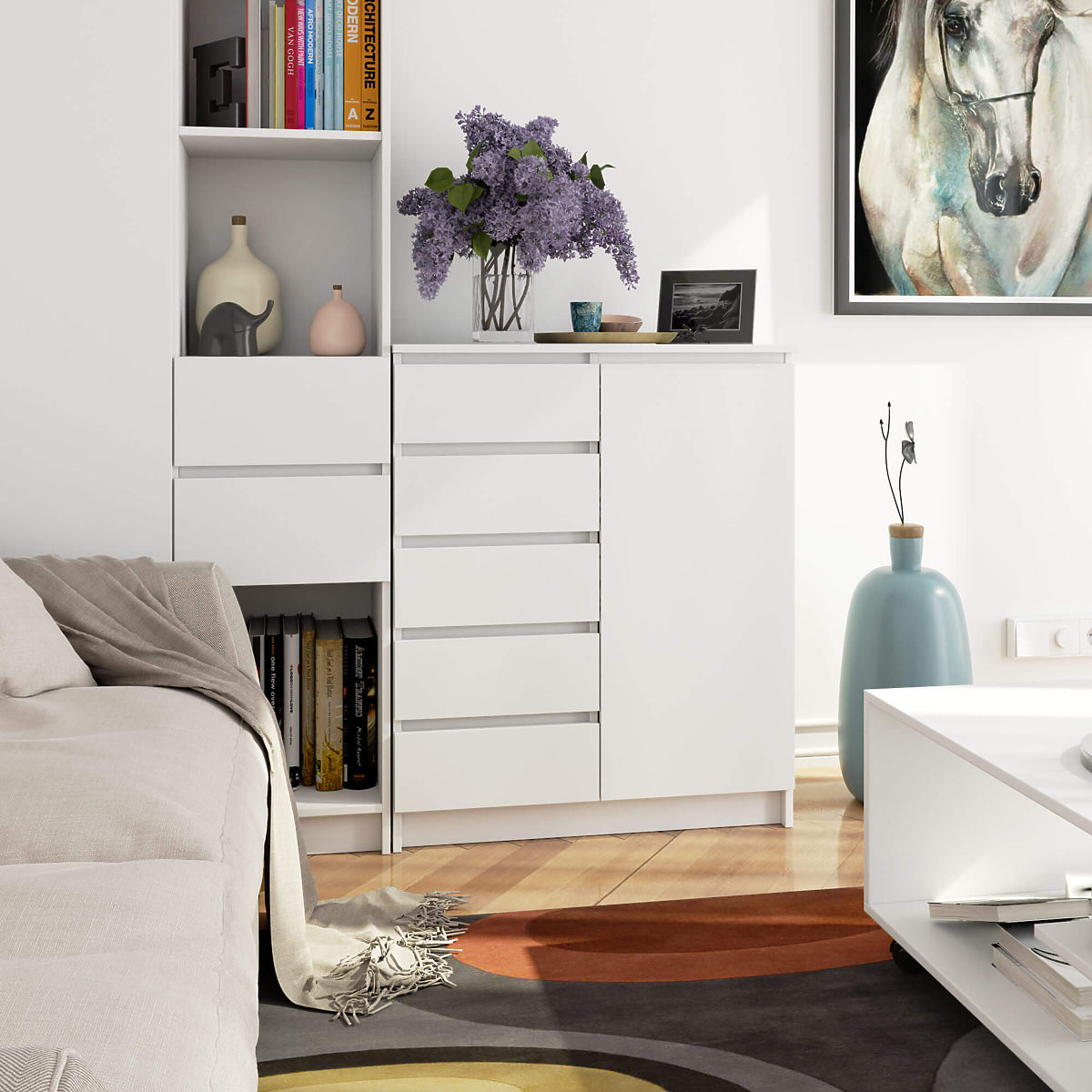 KOMODA 80 cm 5 ZÁSUVIEK 1 DVIERKA FARBA BIELA