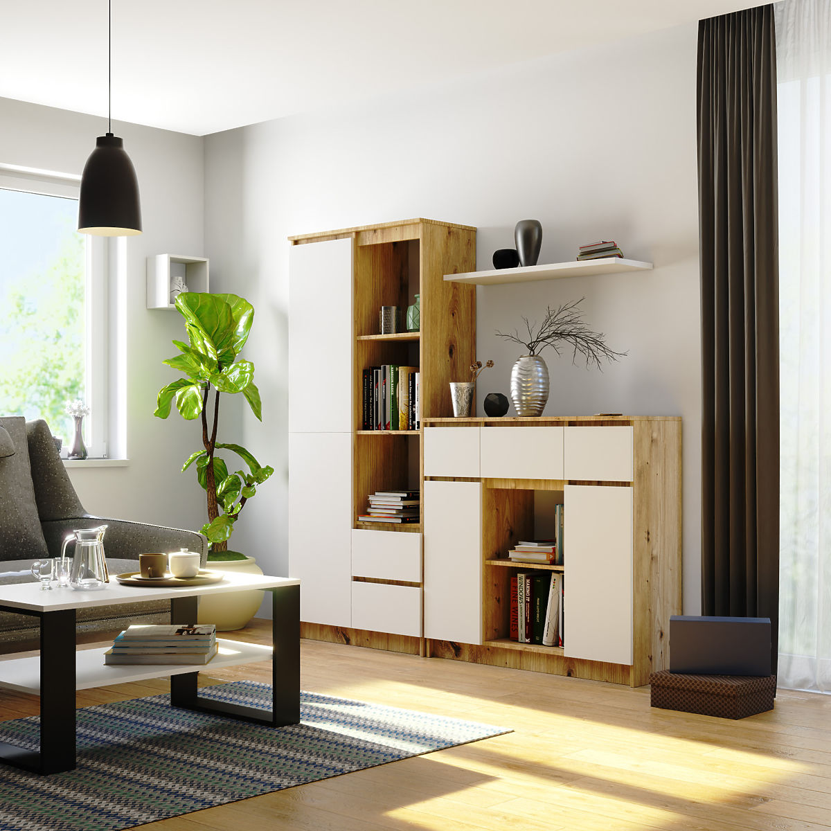 Babynabytek.sk » Detský nábytok / Komody a skrine / Komody / KOMODA K100 2D 3SZ 1P PK DUB ARTISAN / BIELA