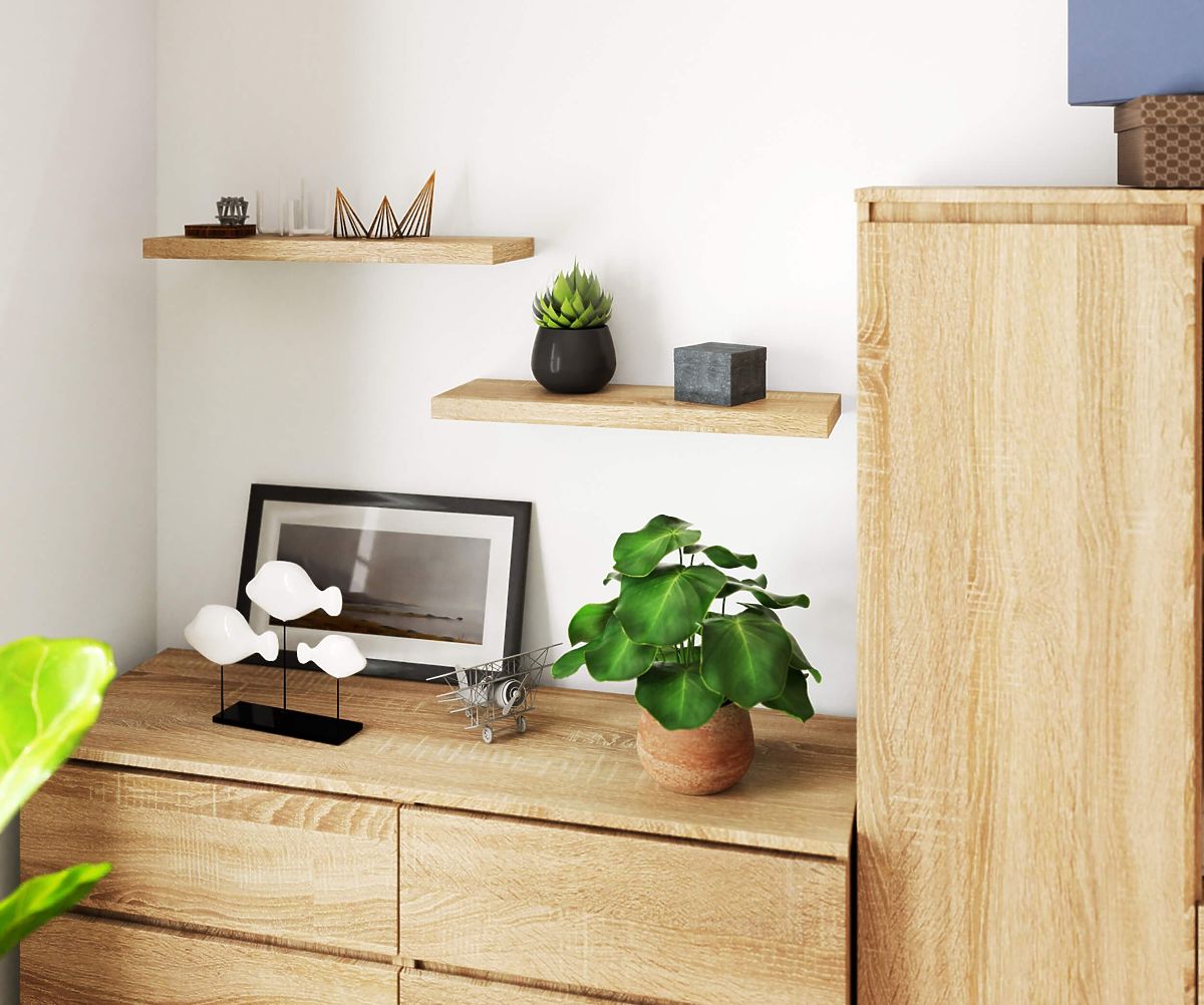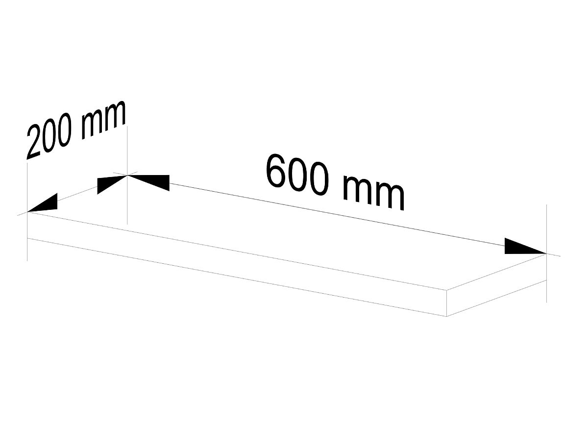 Nábytková polica 60 cm Vyrobená z laminovanej dosky odolnej proti oderu. Hrany sú pokryté melamínom. Súčasťou balenia sú neviditeľné nástenné držiaky.
