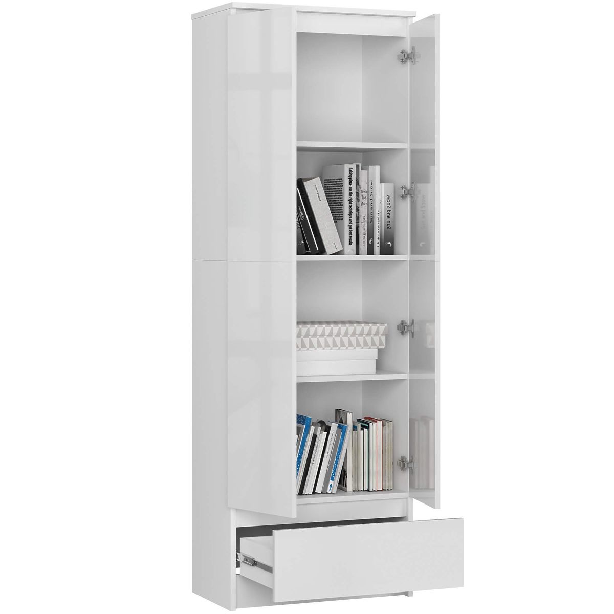 UZAVRETÁ KNIŽNICA CLP 60cm 1 ZÁSUVKA 2 DVEŘE Korpus - Biely | Čelá - Biely Vysoký Lesk