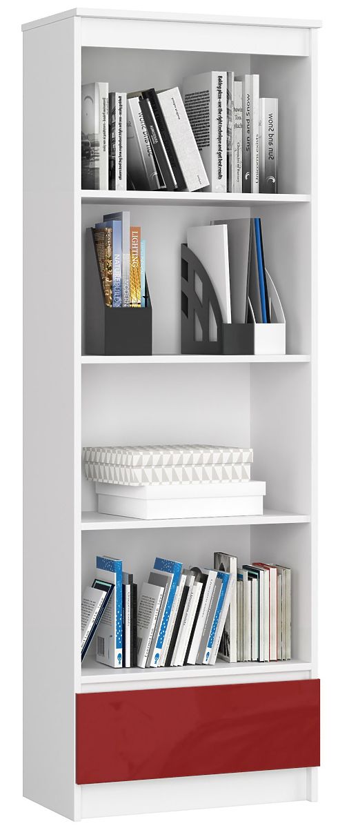 Babynabytek.sk » Knižnice, regále a poličky / Regály / REGÁL R 60 cm CLP 1 ZÁSUVKA 4 POLICE BIELY / ČERVENÝ LESK