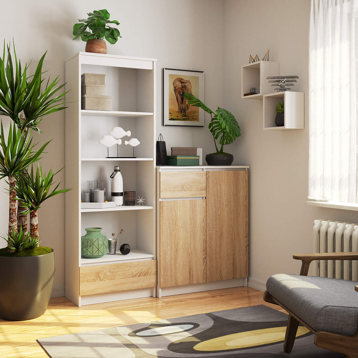 Otvorený regál s policami a zásuvkou, rozmer 60x180x35 cm. .. viac