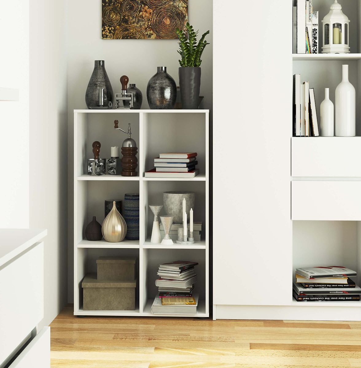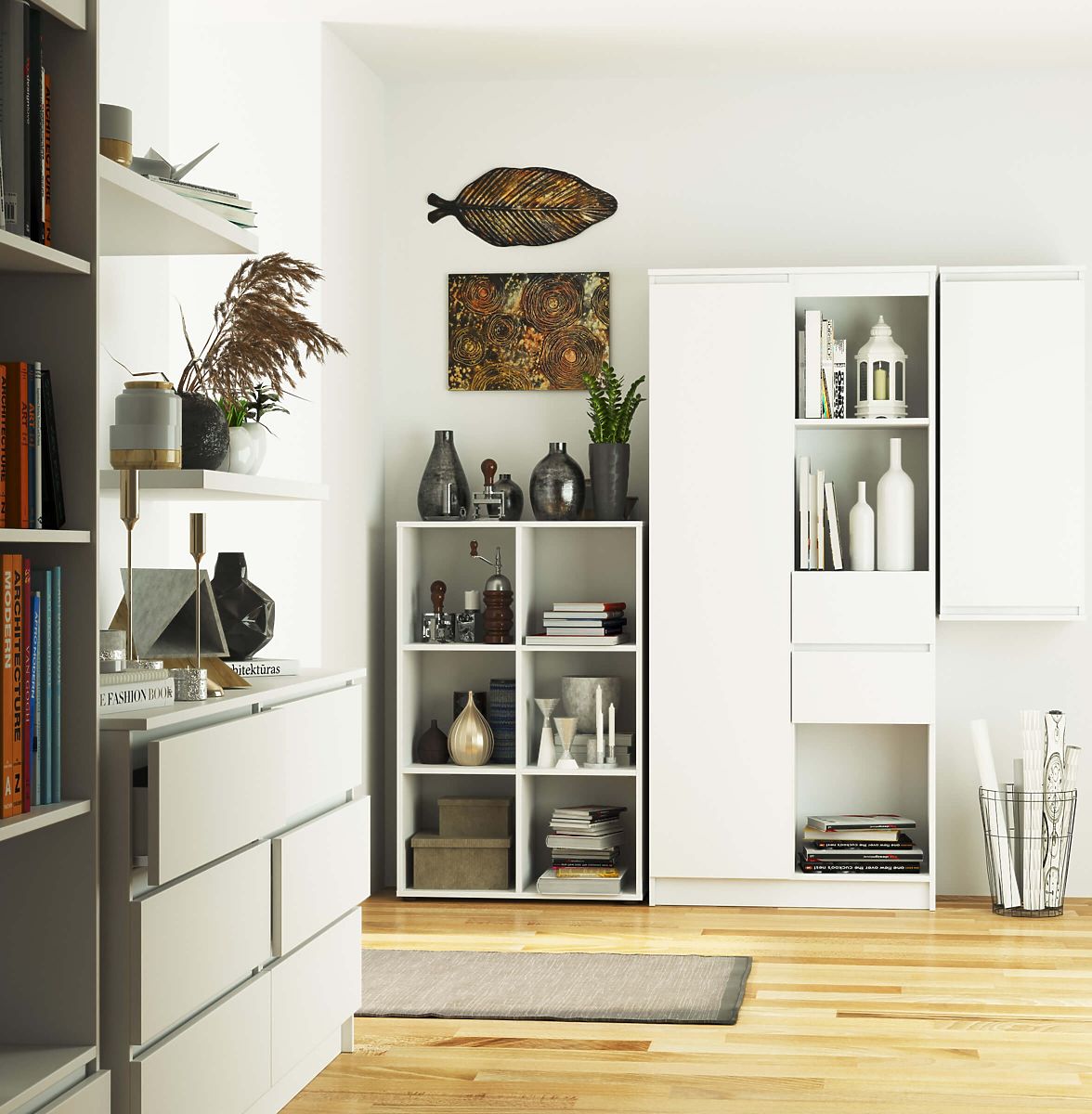 - elegantný vzhľad: regál sa vyznačuje jednoduchou formou, je v štýlovej bielej farbe,