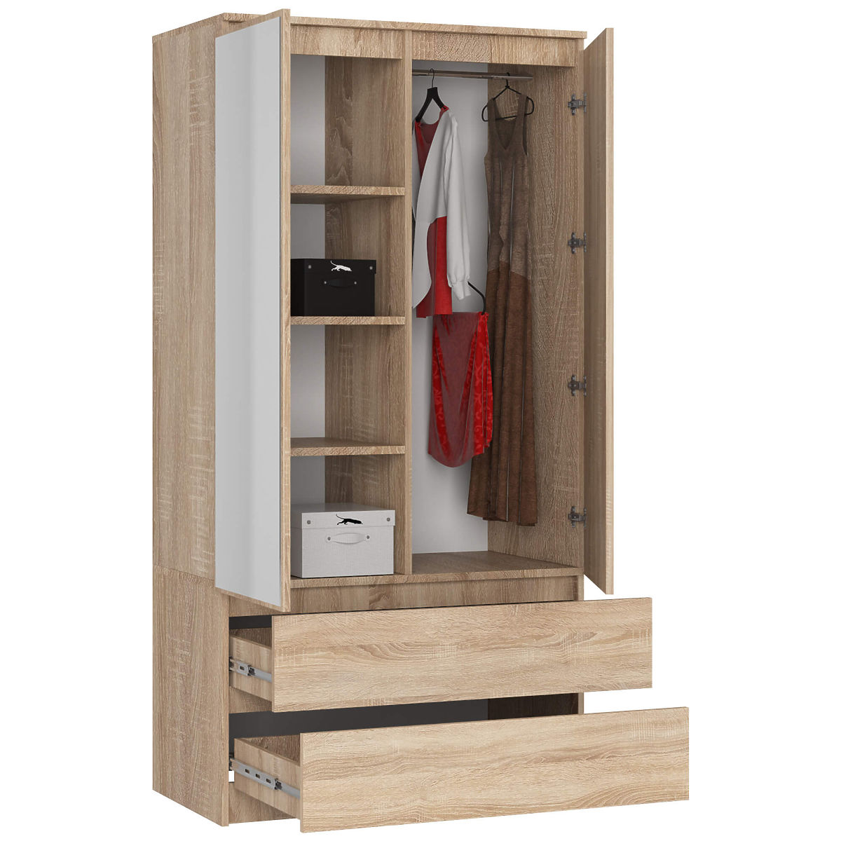 Babynabytek.sk » Detský nábytok / Komody a skrine / Šatníkové skrine / SKRIŇA S90 2D 2SZ 2 ZRKADLO CLP PK SONOMA