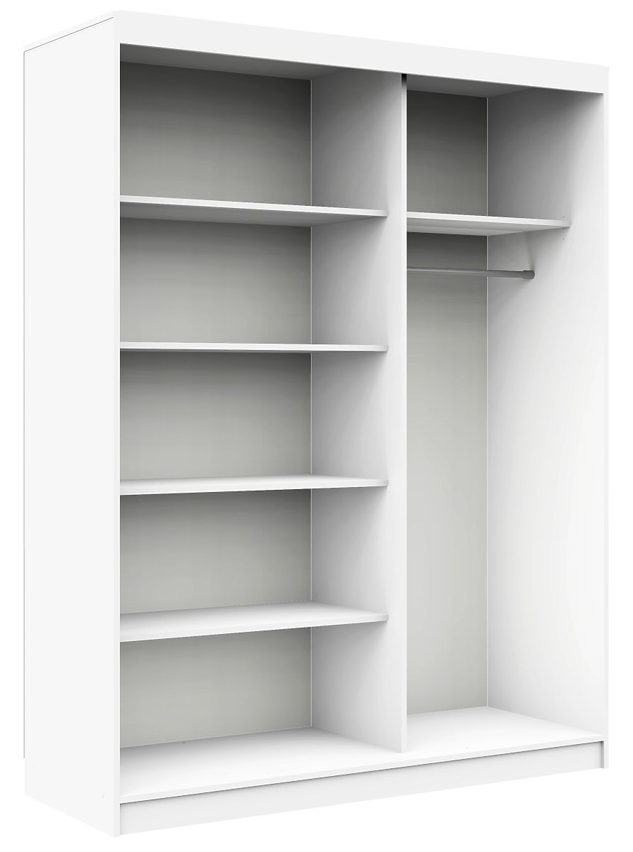 Biela posuvná skriňa 150 cm s policami a tyčou na oblečenie. Veľká plocha na využitie.