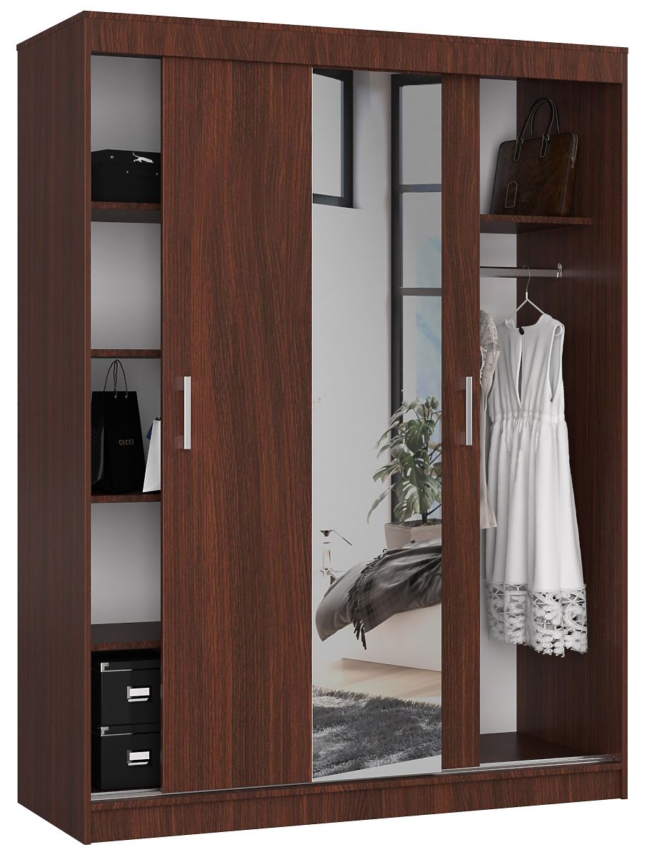 Posuvná skriňa 150 cm so zrkadlom je vynikajúcou voľbou pre všetkých, ktorí si cenia ako vysokú kvalitu týchto produktov, tak ich atraktívnu cenu, jednoduchú montáž a spomínanú ergonómiu každodenného používania.