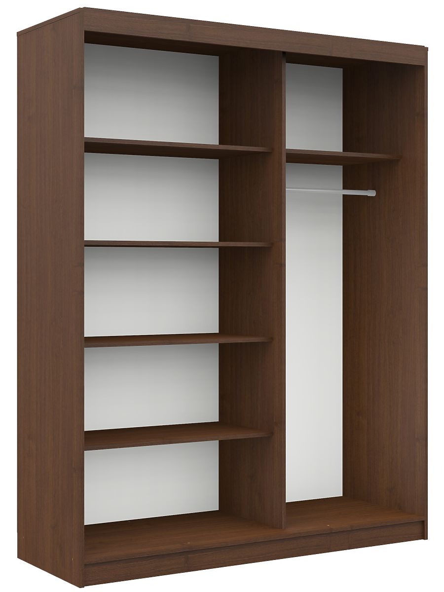 Posuvná skriňa vo farbe wenge s dĺžkou 150 cm s policami a tyčou na oblečenie. Veľká plocha na využitie.