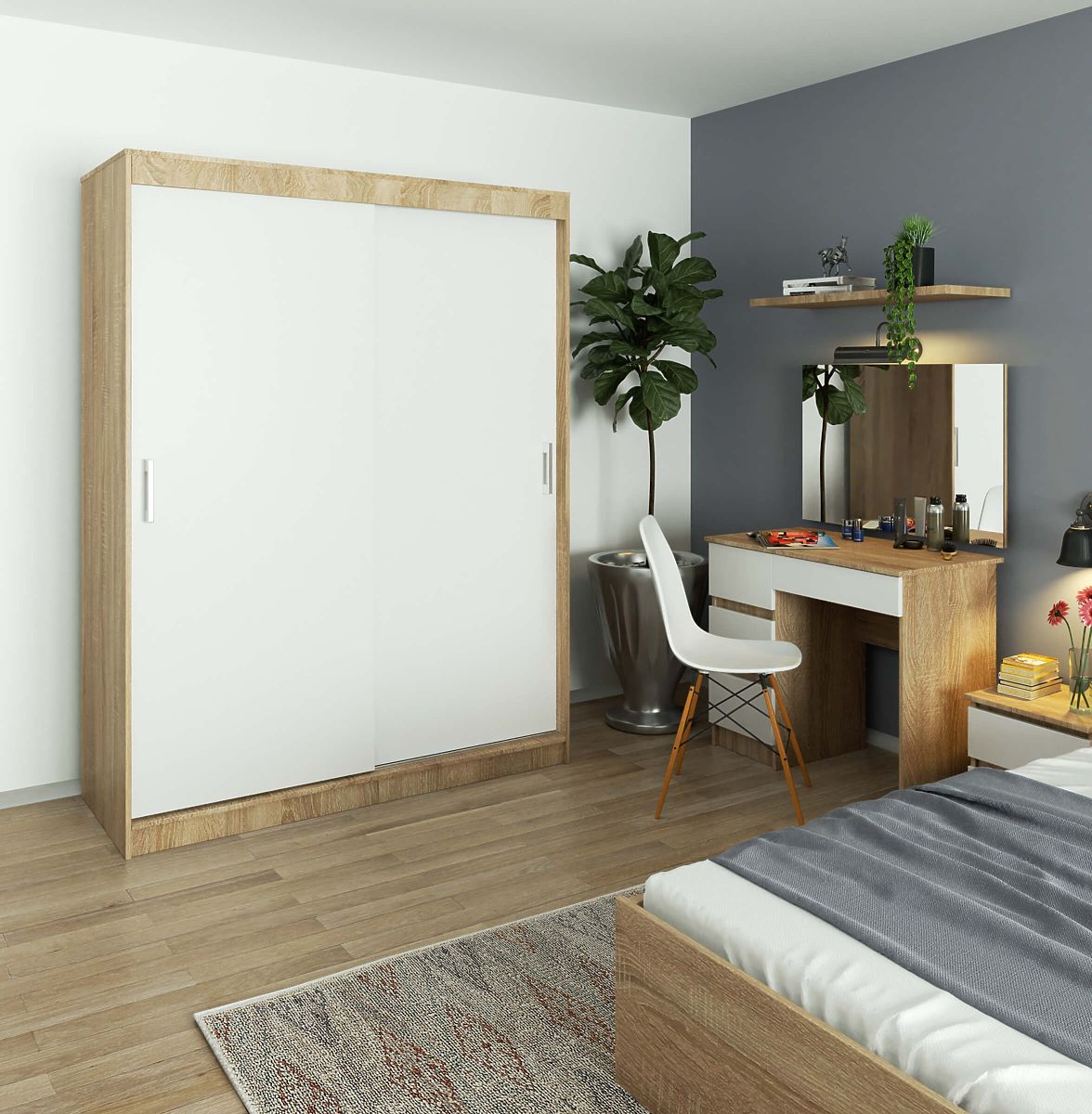 Babynabytek.sk » Detský nábytok / Komody a skrine / Šatníkové skrine / POSUVNÁ SKRIŇA 150 cm CLP MONO SONOMA/BIELA