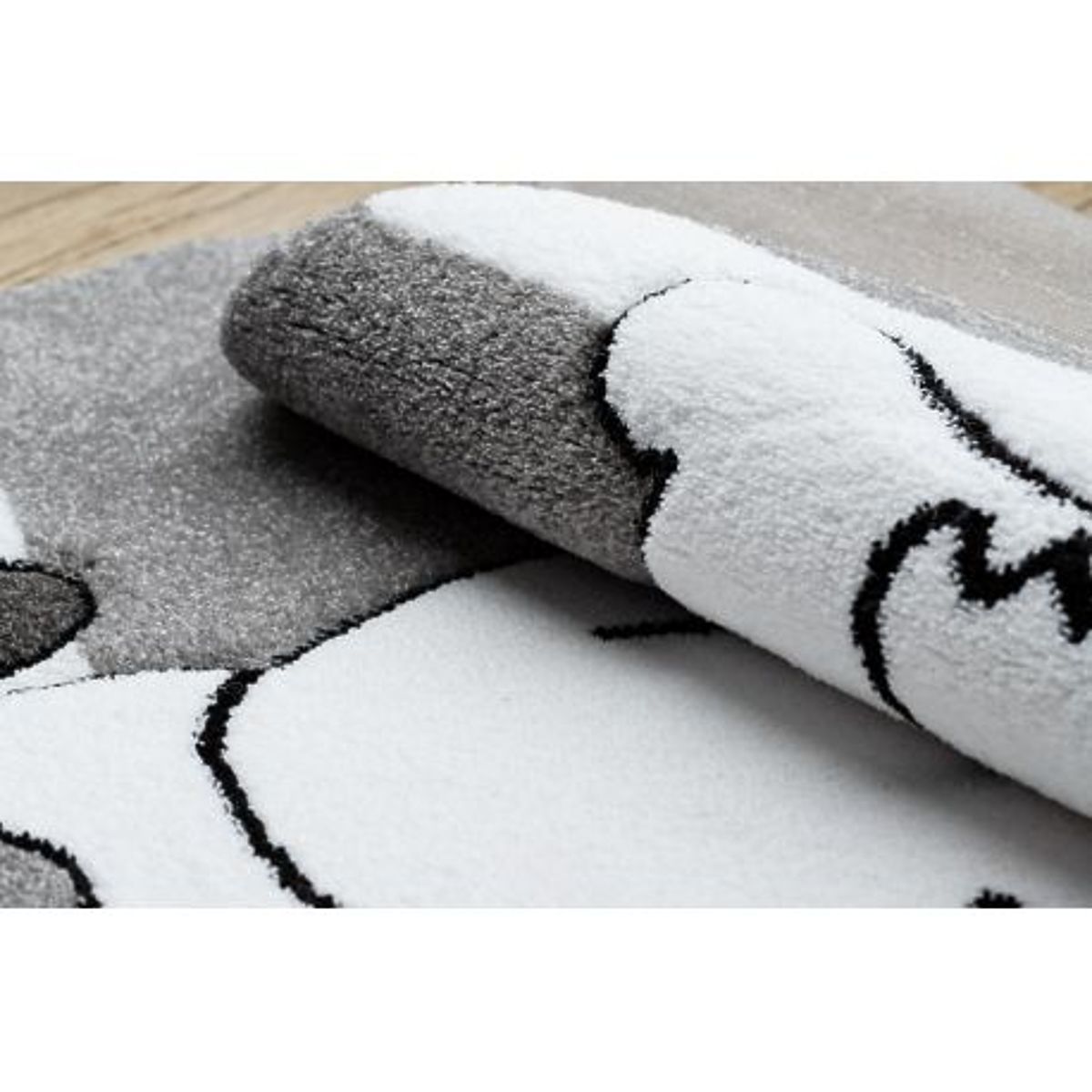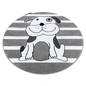 Okrúhly koberec s motívom šteniatka na jemne sivom podklade. .. viac