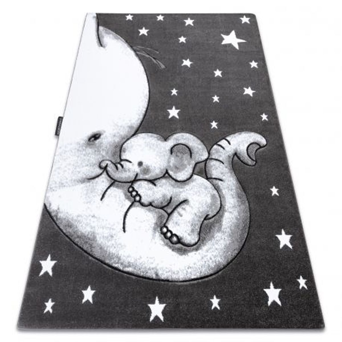 Babynabytek.sk » Detský nábytok / Koberce / Kusové koberce / Koberec PETIT SLON S CHOBOTOM, SLONÍK, HVIEZDY, sivý