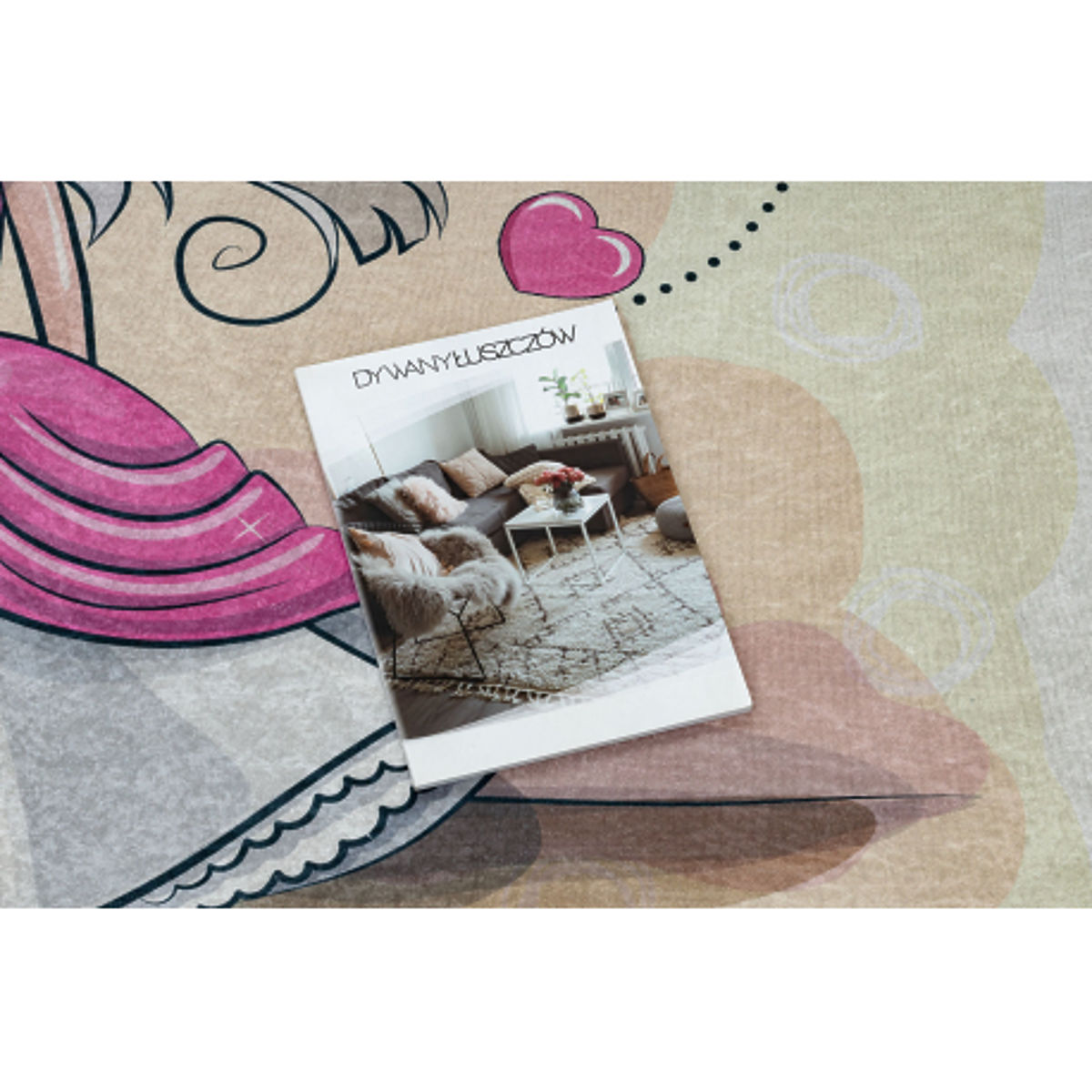 Premeňte detskú izbu na kráľovské kráľovstvo s umývacím kobercom BAMBINO 43020, ktorý očarí motívom princeznej a jemných hviezdičiek. Kombinácia krémovej a ružovej farby pôsobí nežne, elegantne a krásne doplní každú dievčenskú izbičku. Koberec vytvára rozprávkovú atmosféru, v ktorej sa vaše dieťa bude cítiť ako skutočná princezná – ideálny na hranie, tvorenie aj oddych. Koberec je vyrobený zo 100% polyesteru, čo zaisťuje príjemne mäkký povrch, vysokú odolnosť a jednoduchú údržbu. Vďaka hrúbke 5 mm je pohodlný na dotyk a príjemný pri sedení. Nízka hmotnosť 0,70 kg/m² umožňuje jednoduché prenášanie a manipuláciu. Veľkou výhodou je možnosť prania v práčke, čo uľahčuje udržiavanie čistoty. Protišmyková spodná vrstva sa postará o bezpečnosť pri chôdzi aj hraní na hladkých podlahách.