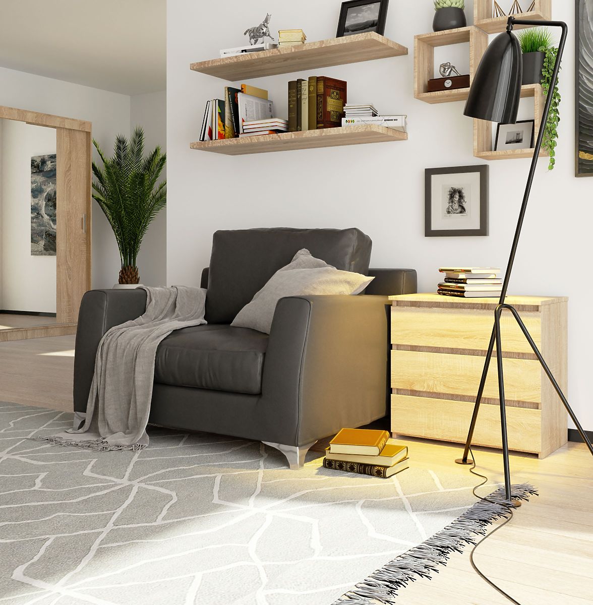 Elegantná, funkčná a moderná - taká je komoda CL3 s tromi zásuvkami z ponuky internetového obchodu s nábytkom Akord. Tento kus nábytku v elegantnej a módnej farbe dub sonoma sa skvele hodí nielen do spálne či obývacej izby, ale aj do predsiene a kancelárskych priestorov.
