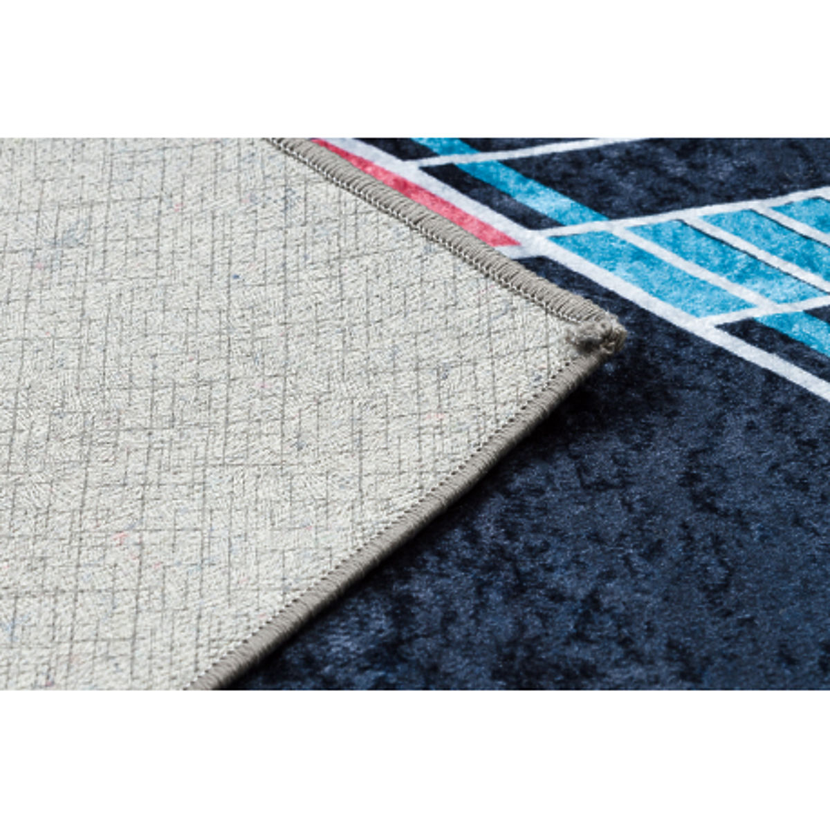 Koberec je protišmykový a možno ho bez problémov prať v práčke, čo zaisťuje jednoduchú údržbu a hygienické prostredie. Vďaka polyesterovému materiálu je tiež ľahko umývateľný a odolný voči nečistotám. S hrúbkou približne 5 mm poskytuje pohodlie a jednoduchú manipuláciu.