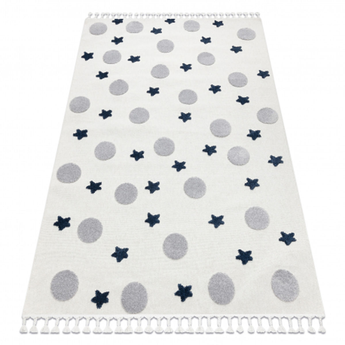 Babynabytek.sk » Detský nábytok / Koberce / Kusové koberce / Koberec YOYO GD75 biele / šedo - hviezdy, kruhy pre deti, štrukturálny, senzoricky Strapce