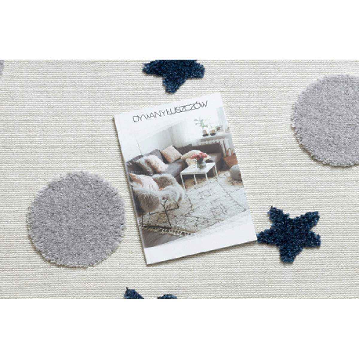 Obdĺžnikový koberec YOYO GD75 Hviezdy a kruhy je ideálnym doplnkom detských izieb, ktorý kombinuje hravosť a senzorickú stimuláciu. Biely podklad so šedými detailmi vytvára jemný, moderný a prívetivý vzhľad vhodný do rôznych interiérov.