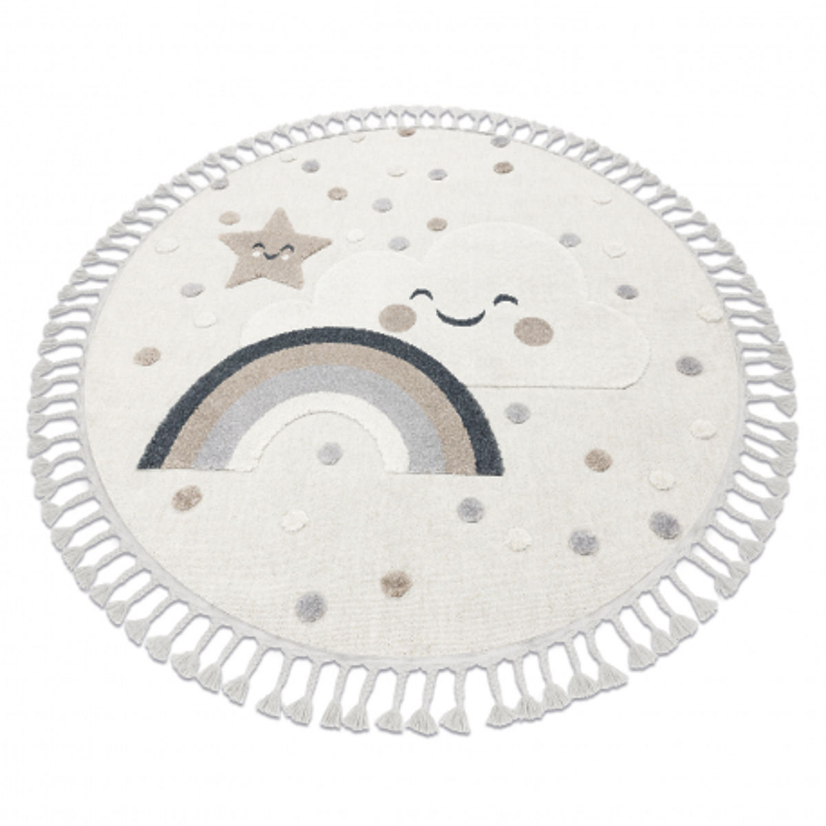 Babynabytek.sk » Detský nábytok / Koberce / Kusové koberce / Koberec okrúhly YOYO EY78 biely / béžový - Oblak, Dúha, bodky pre deti, štrukturálny, senzorický Str