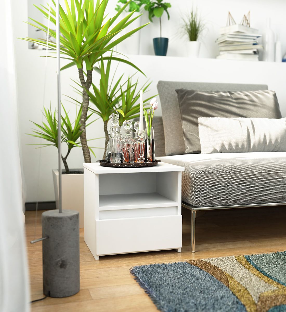 Biely nočný stolík CL1 s jednou zásuvkou a ABS hranou. .. viac