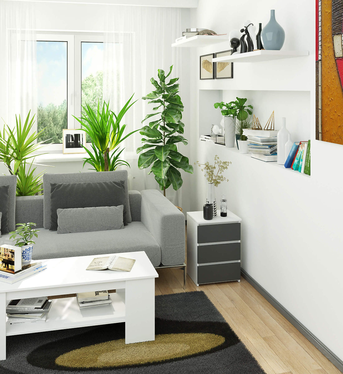 KOMODA CL3 40 CM 3SZ BIELA / GRAFITOVÁ ŠEDÁ
