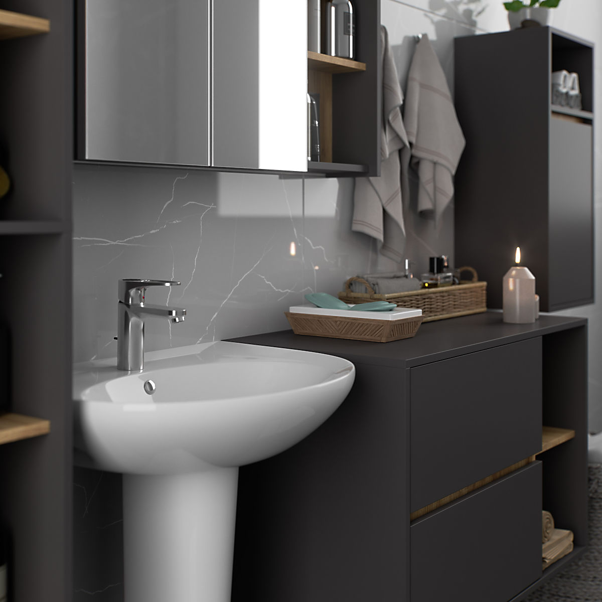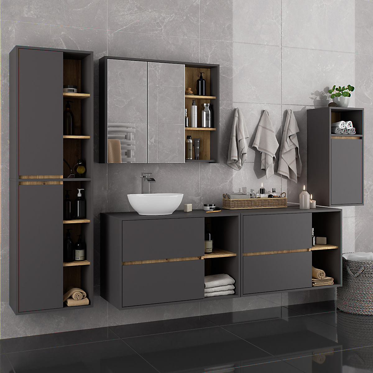 Babynabytek.sk » Detský nábytok / Komody a skrine / Šatníkové skrine / ZÁVESNÁ KÚPEĽŇOVÁ SKRINKA VAMI W35 1D 1W GRAFITOVÁ SIVÁ / DUB ARTISAN