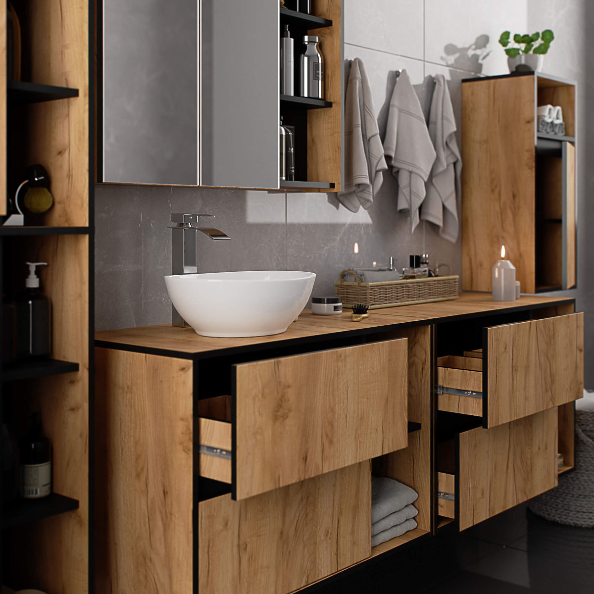 Babynabytek.sk » Detský nábytok / Komody a skrine / Šatníkové skrine / KÚPEĽŇOVÁ SKRINKA POD UMÝVADLO S OTVORMI VAMI W90 UM 2SZ 2P DUB CRAFT / ČIERNA