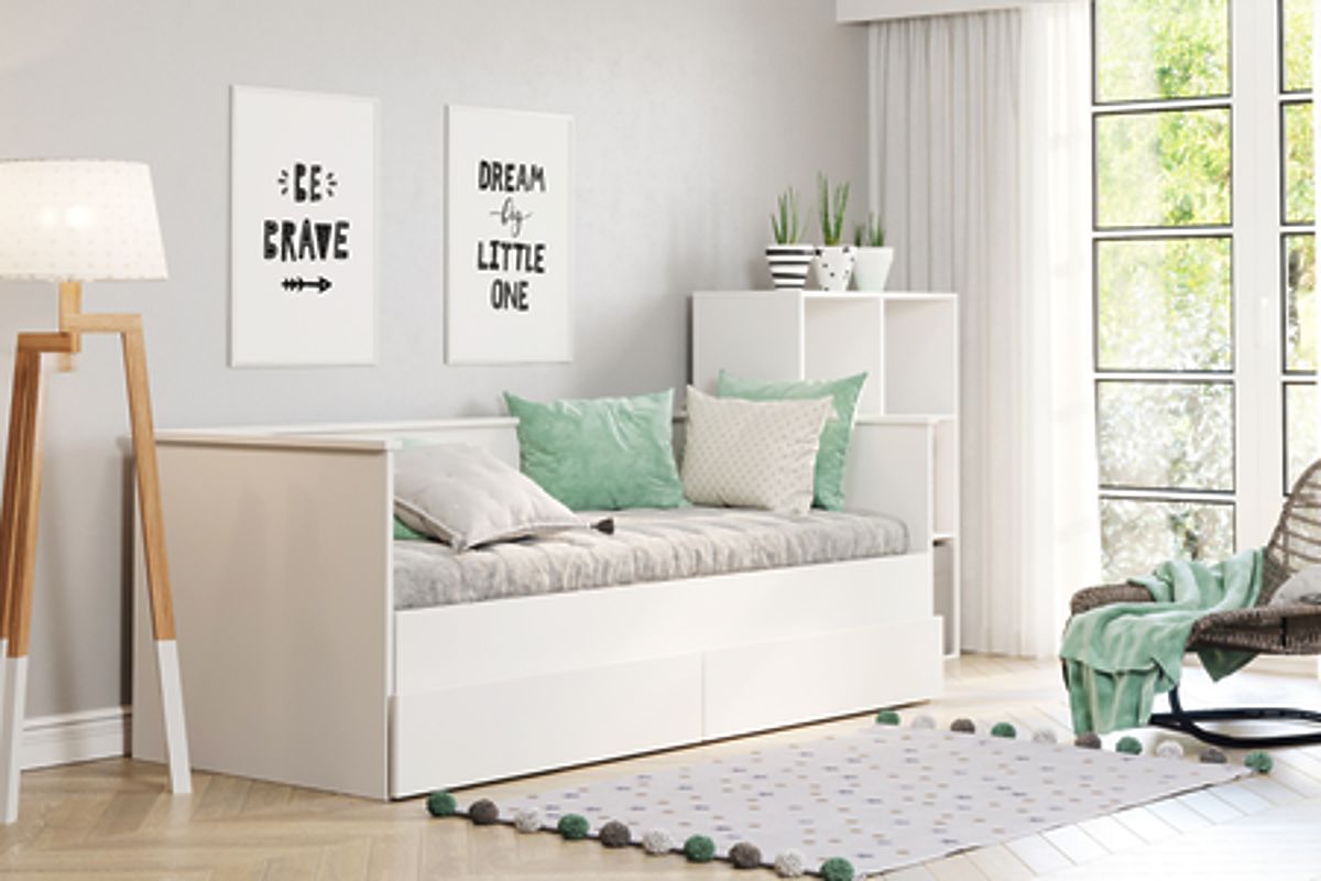Posteľ HELIOS je moderná, rozkladacia posteľ pre mládež, ktorá kombinuje estetiku s praktickými funkciami. Vďaka možnosti rýchleho rozloženia na dvojlôžko, vysunutím spodnej základne, sa tento nábytok skvele hodí ako do malých, tak aj priestranných izieb. Jeho univerzálny dizajn v bielej farbe sa prispôsobí každému štýlu interiéru, dodávajúc mu sviežosť a eleganciu.