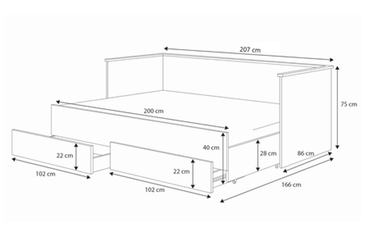 Rozkladacia posteľ pre mládež HELIOS dostupná v bielej farbe je dokonalou kombináciou elegancie a funkčnosti. Vďaka možnosti rýchleho rozloženia na dvojlôžko (160x200 cm) je ideálnym riešením ako pre menšie, tak aj väčšie izby.