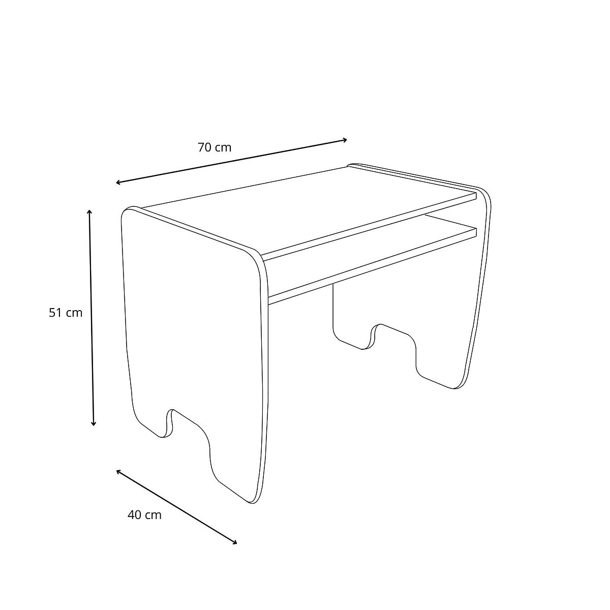 Stôl je vybavený priestrannou poličkou pod doskou, ktorá uľahčuje organizáciu a ukladanie potrebných predmetov, ako sú knihy, pastelky alebo hračky. Vďaka tomu je všetko vždy po ruke a v izbe je jednoduchšie udržiavať poriadok.