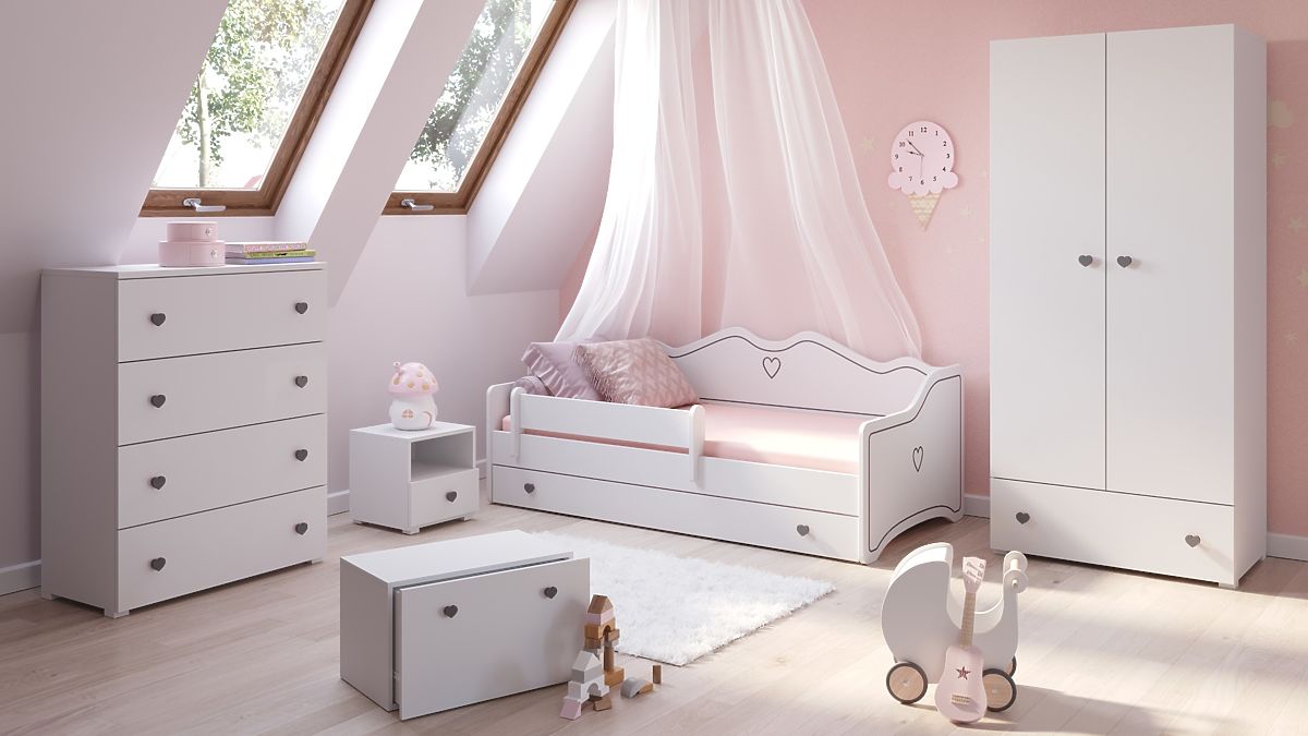 Funkčnosť modelu EMMA zdôrazňuje rad praktických riešení, ktoré uľahčujú každodenný život. Posteľ je vybavená priestrannou zásuvkou na kolieskach, ktorá je ideálna na ukladanie posteľnej bielizne, hračiek, hier alebo iných predmetov, pomáhajúcich udržať poriadok v detskej izbe. Ďalšou výhodou je pohyblivá ochranná zábrana, ktorú možno namontovať na ľubovoľnú stranu postele, čo zvyšuje jej univerzálnosť a bezpečnosť. Konštrukcia postele unesie zaťaženie až 110 kg, takže môže slúžiť po mnoho rokov. Použitie pružinových lamiel v systéme FLEX zaisťuje optimálnu podporu tela, čo ovplyvňuje kvalitu spánku. Navyše vysoké čelo postele umožňuje, aby posteľ počas dňa slúžila ako pohodlná pohovka – ideálna na čítanie, hranie alebo oddych. Toto multifunkčné riešenie sa hodí ako do menších, tak väčších priestorov, plne vyhovujúce potrebám detí a ich rodičov.