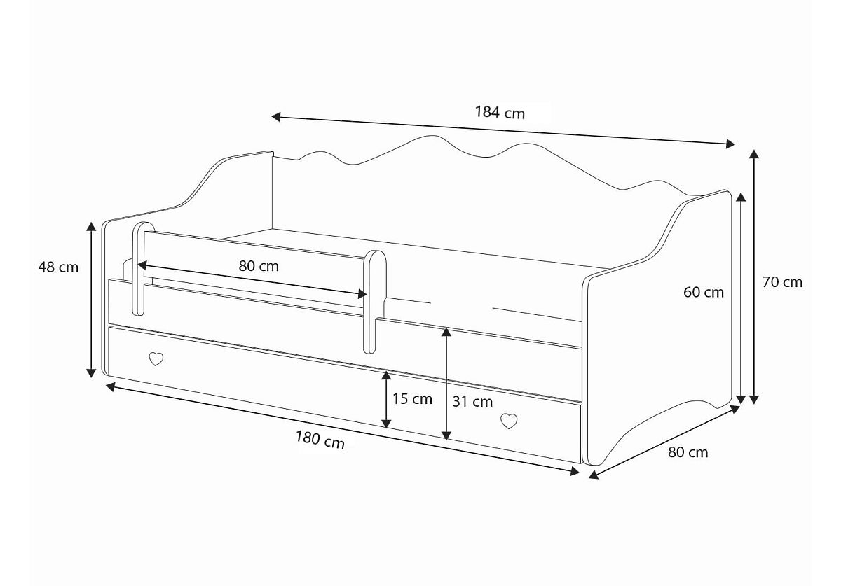 Funkčnosť modelu EMMA zdôrazňuje rad praktických riešení, ktoré uľahčujú každodenný život. Posteľ je vybavená priestrannou zásuvkou na kolieskach, ktorá je ideálna na uloženie posteľnej bielizne, hračiek, hier alebo iných predmetov, čo pomáha udržiavať poriadok v detskej izbe. Ďalšou výhodou je pohyblivá ochranná zábrana, ktorú možno namontovať na ľubovoľnú stranu postele, čo zvyšuje jej univerzálnosť a bezpečnosť. Konštrukcia postele unesie zaťaženie až 110 kg, takže môže slúžiť mnoho rokov. Použitie pružinových lamiel v systéme FLEX zaisťuje optimálnu podporu tela, čo ovplyvňuje kvalitu spánku. Navyše vysoké čelo postele umožňuje, aby posteľ počas dňa slúžila ako pohodlná pohovka – ideálna na čítanie, hranie alebo odpočinok. Toto multifunkčné riešenie sa osvedčí ako v menších, tak vo väčších miestnostiach a plne vyhovuje potrebám detí a ich rodičov.