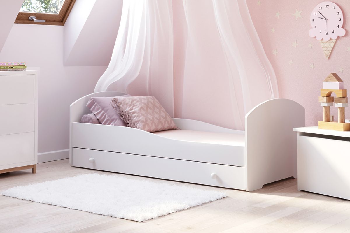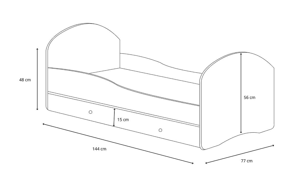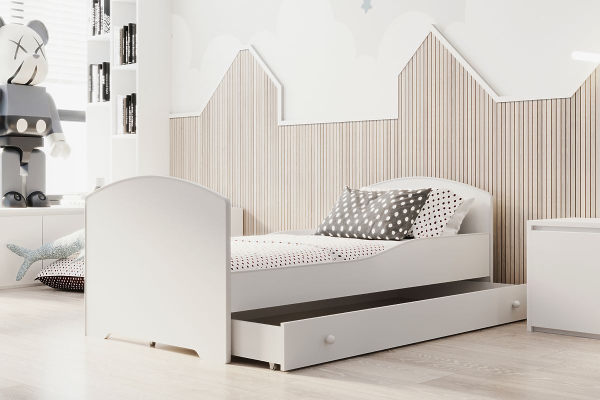 Detská posteľ LUK je dokonalým spojením komfortu, moderného dizajnu a funkčnosti, vytvorená s ohľadom na najmenších. Jej univerzálny vzhľad zaručuje, že sa hodí do rôznych interiérov, poskytuje pohodlie a bezpečnosť pri používaní.
