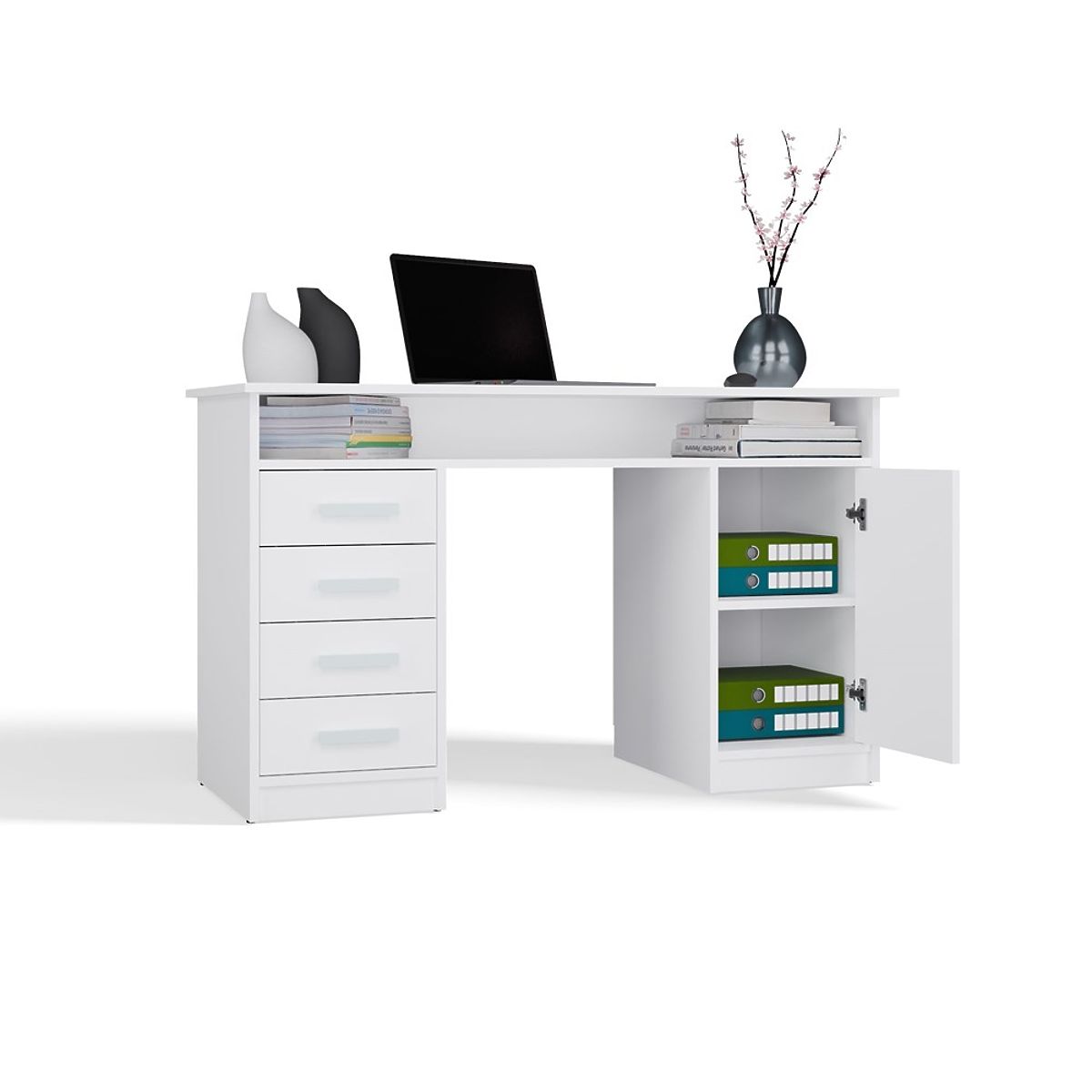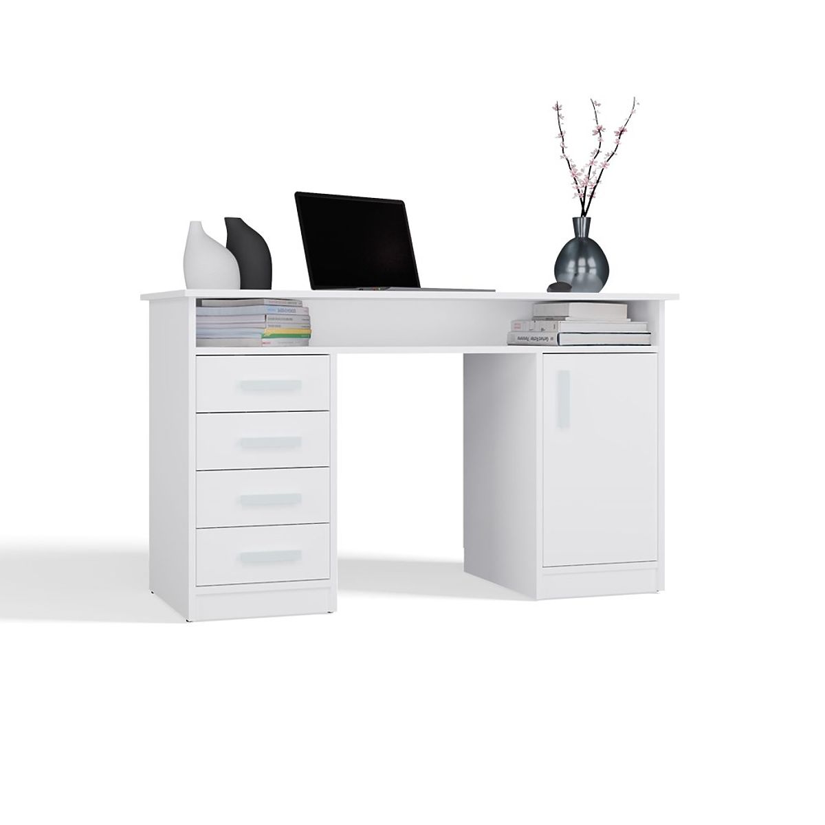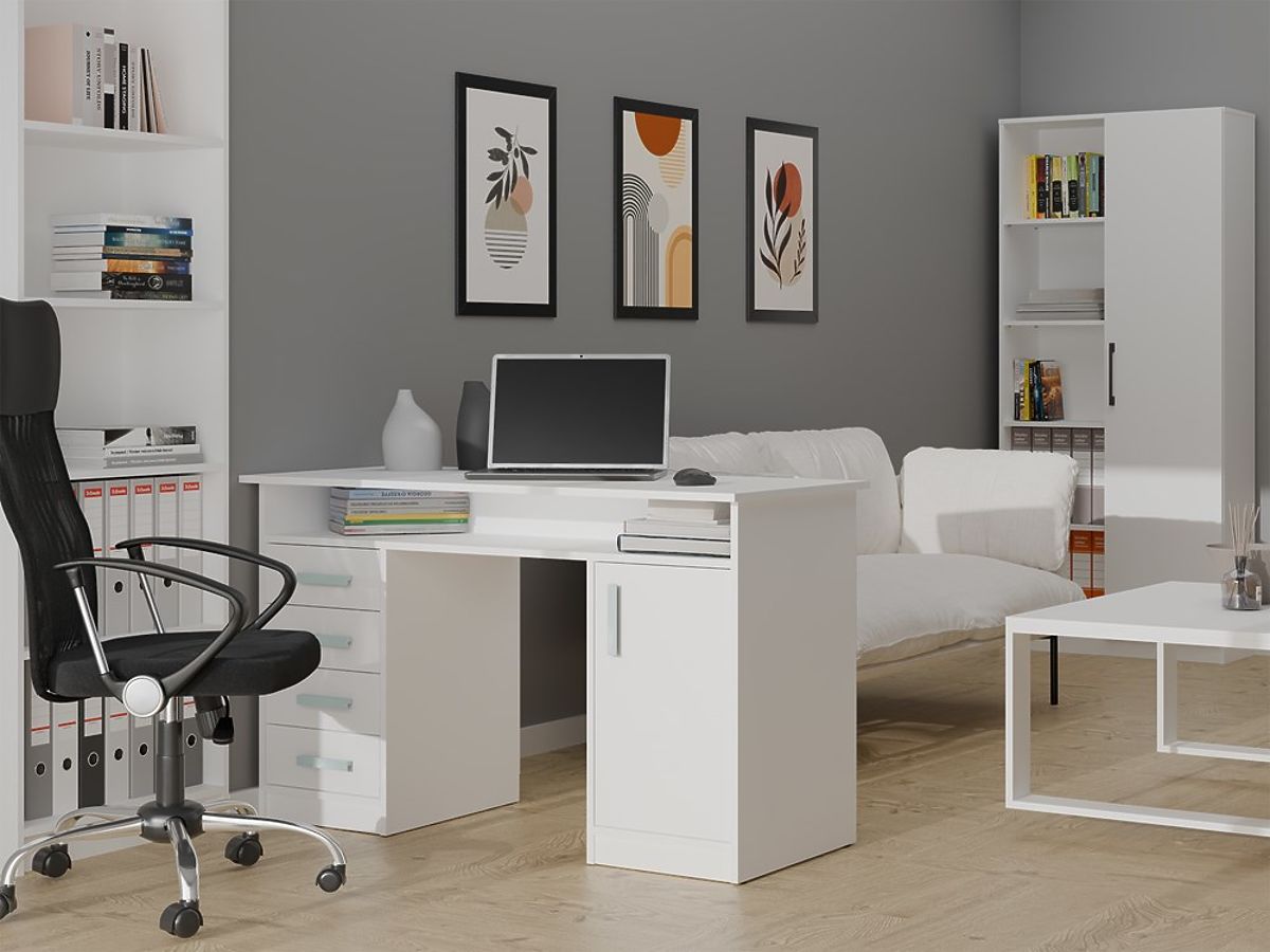 BIURKO ADA BIELE 125 Cm 4 Zásuvky Skrinka Poličky Do Kancelárie Izby Na Laptop