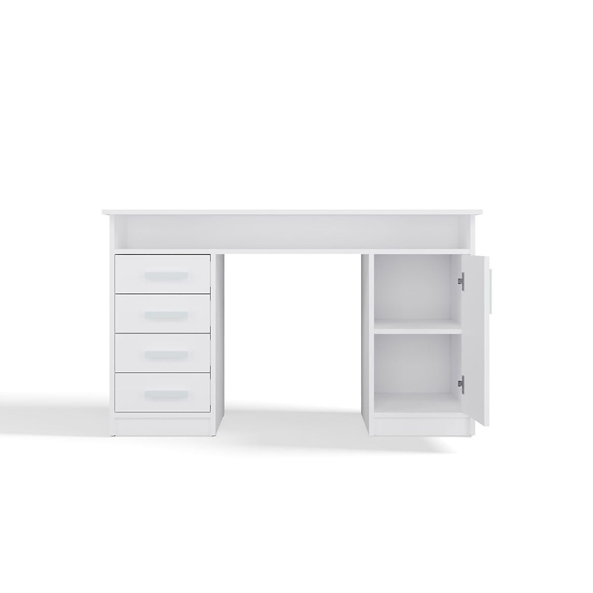 Vybavený 4 zásuvkami a uzamykateľnou skrinkou s 2 policami, poskytuje veľa miesta na uloženie dokumentov, kníh alebo kancelárskych potrieb. Dodatočná otvorená polička pod doskou je ideálna na drobné predmety, laptop alebo zošity.
