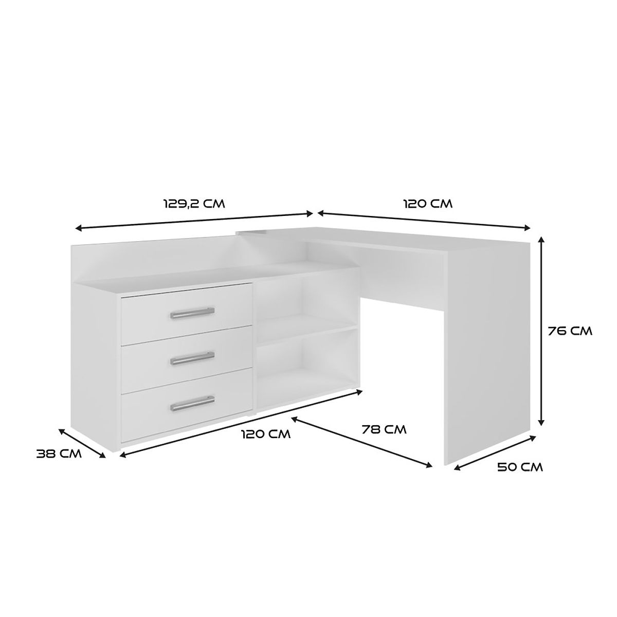 FUNKČNÝ ROHOVÝ PÍSACÍ STÔL S 3 ZÁSUVKAMI