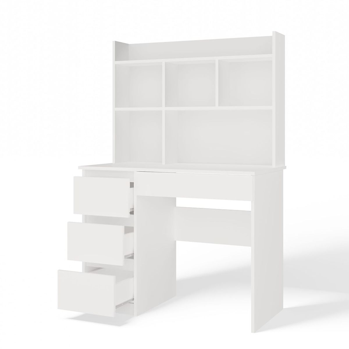 Písací stôl MIJAS Ľavý S Nadstavcom Biely Mat 4 Zásuvky 4 Poličky Do Kancelárie Izby