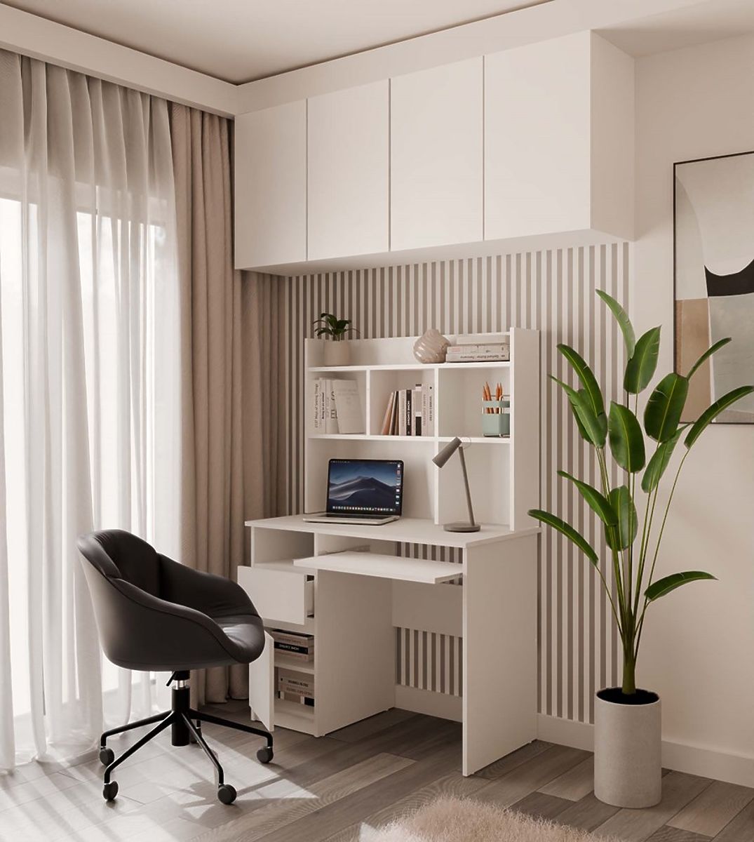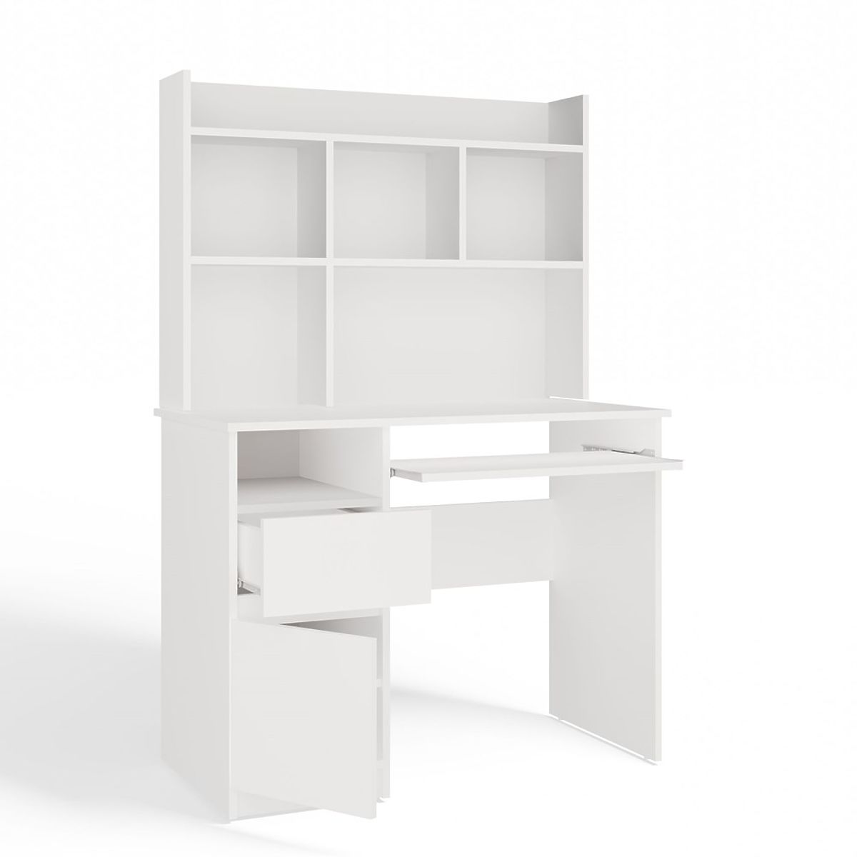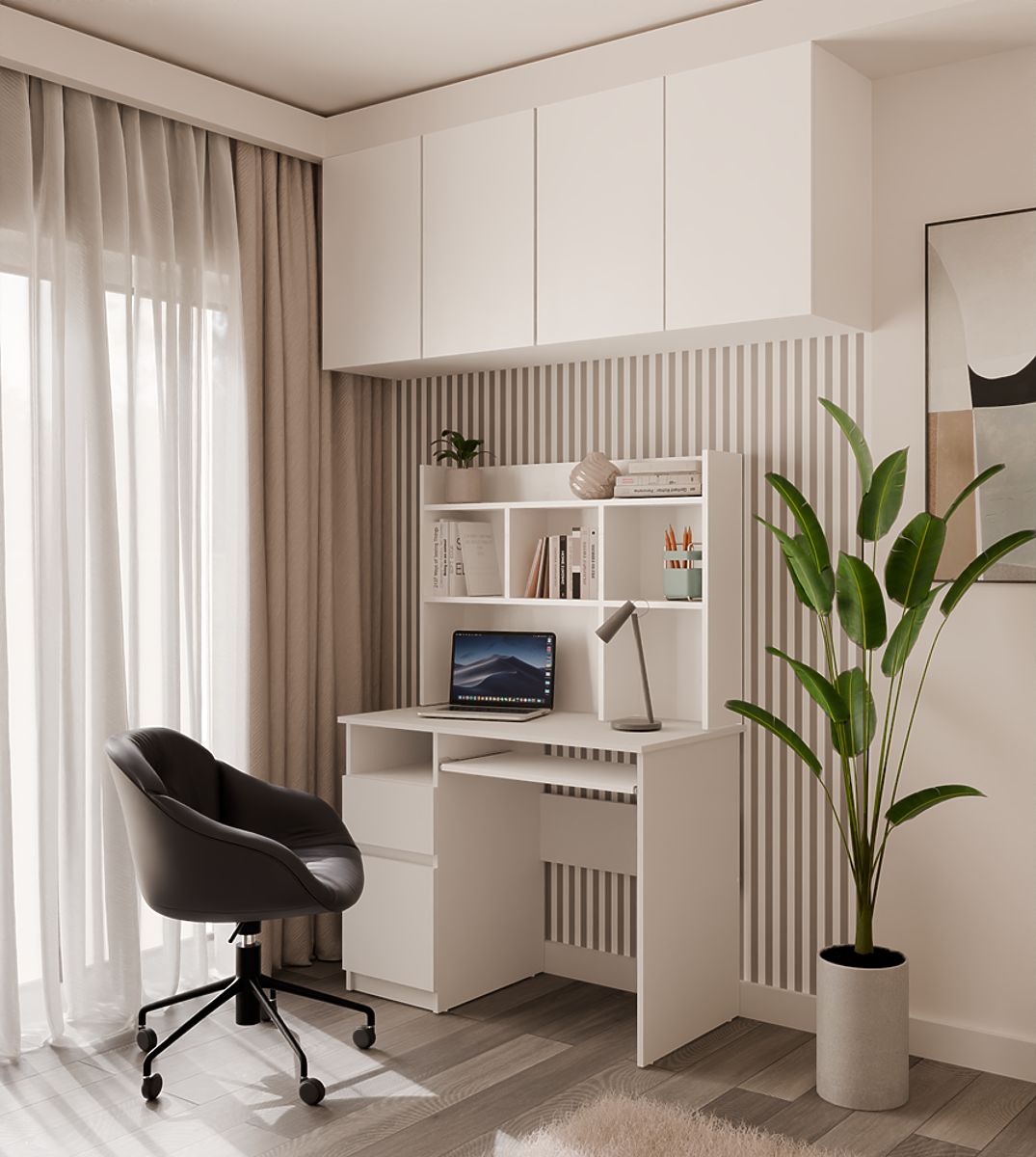 Moderný dizajn, matná biela a praktické usporiadanie úložného priestoru robia z tohto nábytku ideálny doplnok do mládežníckej, detskej izby alebo domácej kancelárie.