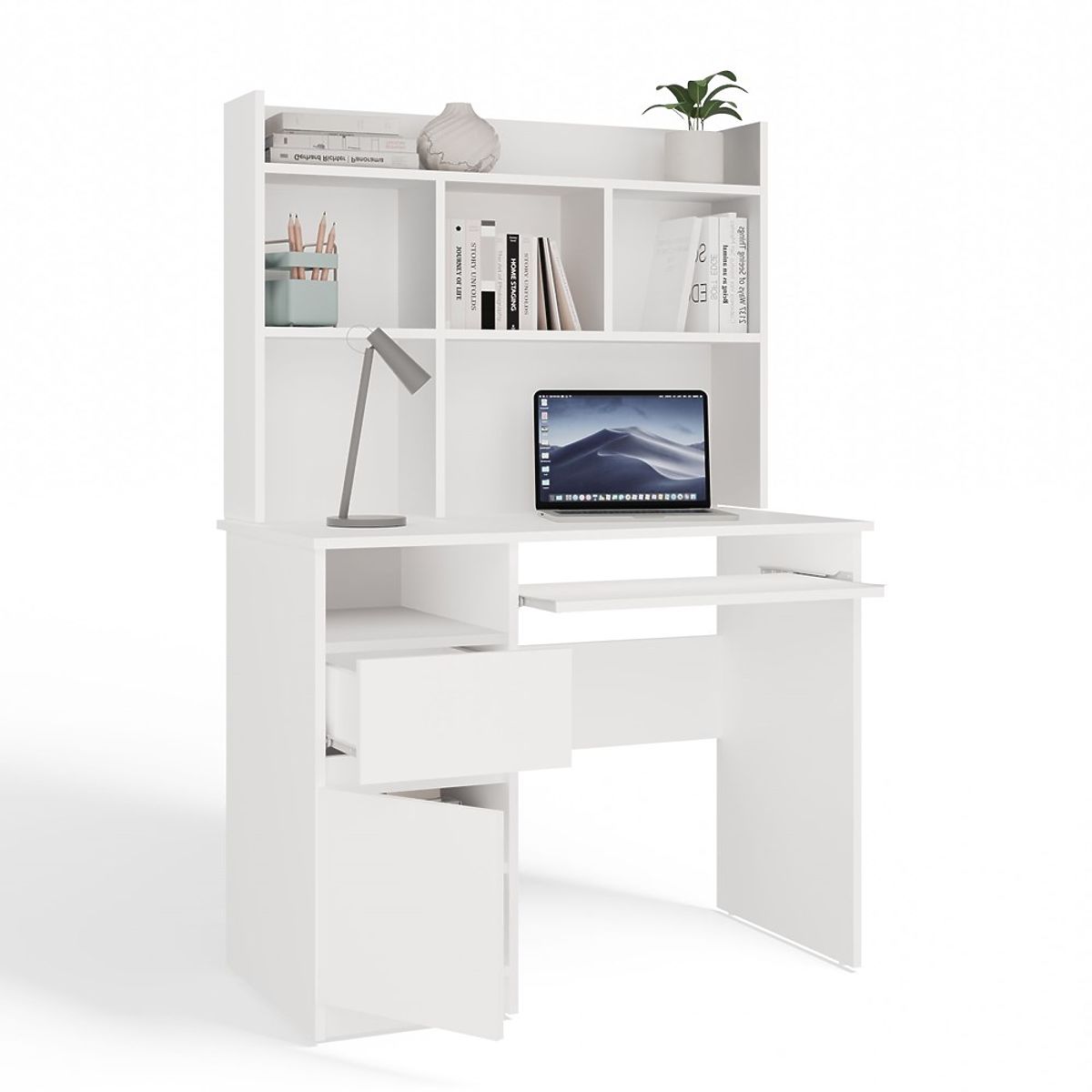Stôl PORTO Ľavý s Nadstavcom Biely Mat Zásuvka Poličky do Kancelárie Izby