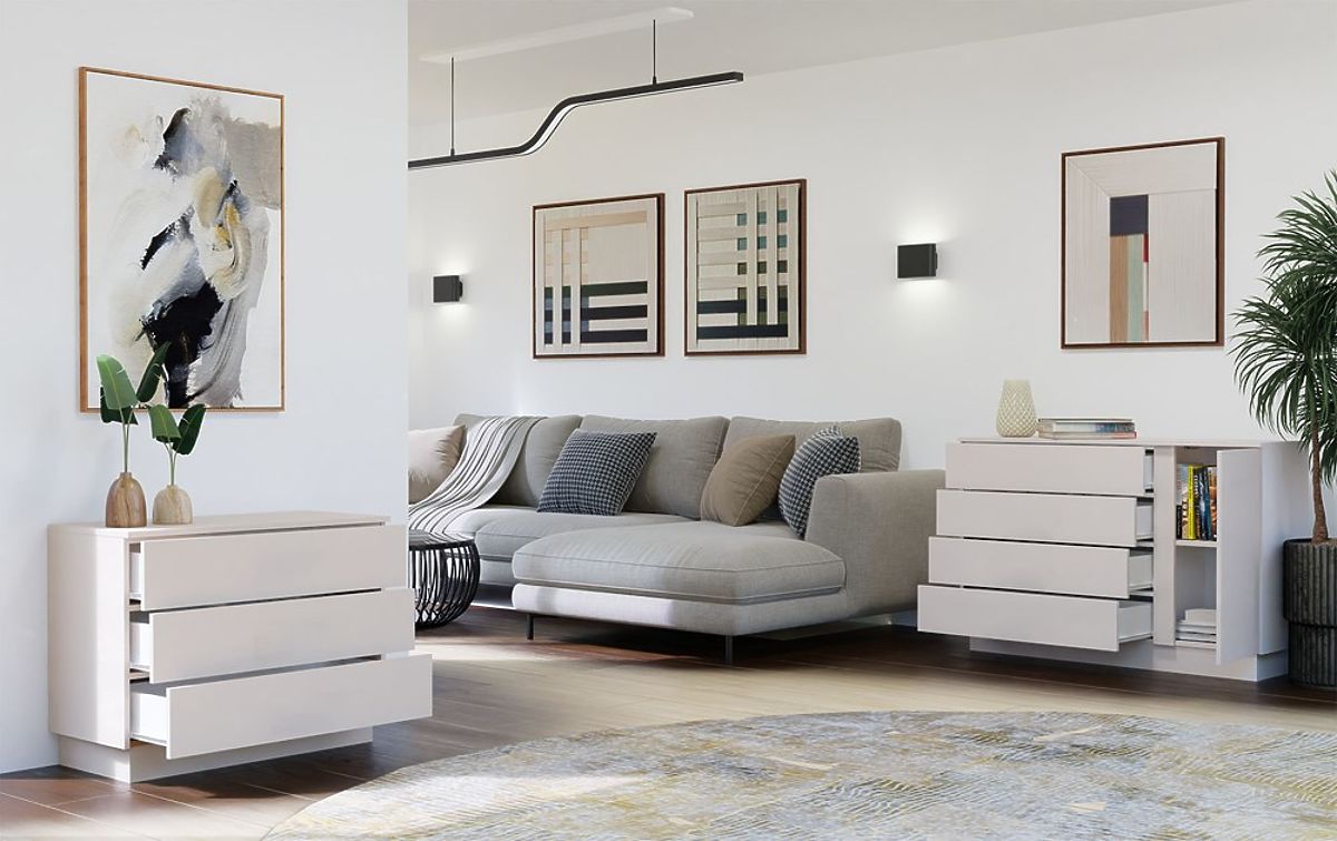 Babynabytek.sk » Detský nábytok / Komody a skrine / Komody / Komoda AMBER 3S Skrinka 3 Zásuvky Do Spálne Obývacej Izby KAŠMÍR Béžová
