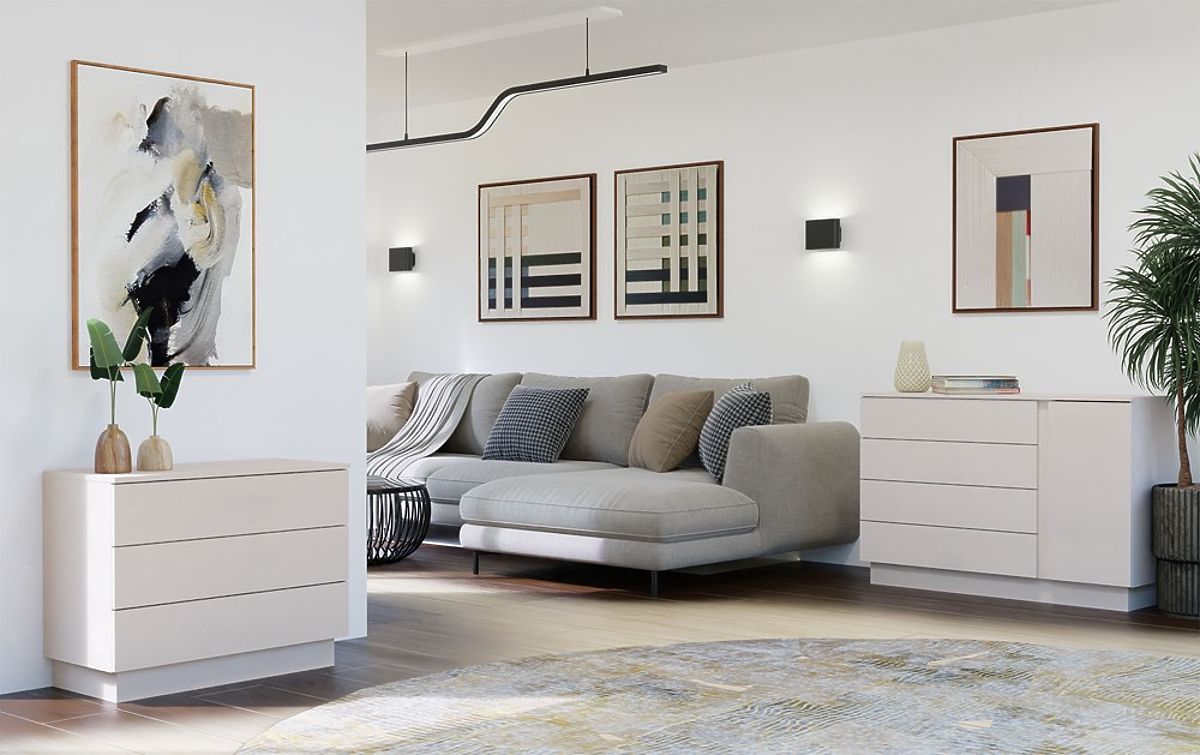 Moderná komoda AMBER 3S s 3 zásuvkami v kašmírovej béžovej farbe. .. viac