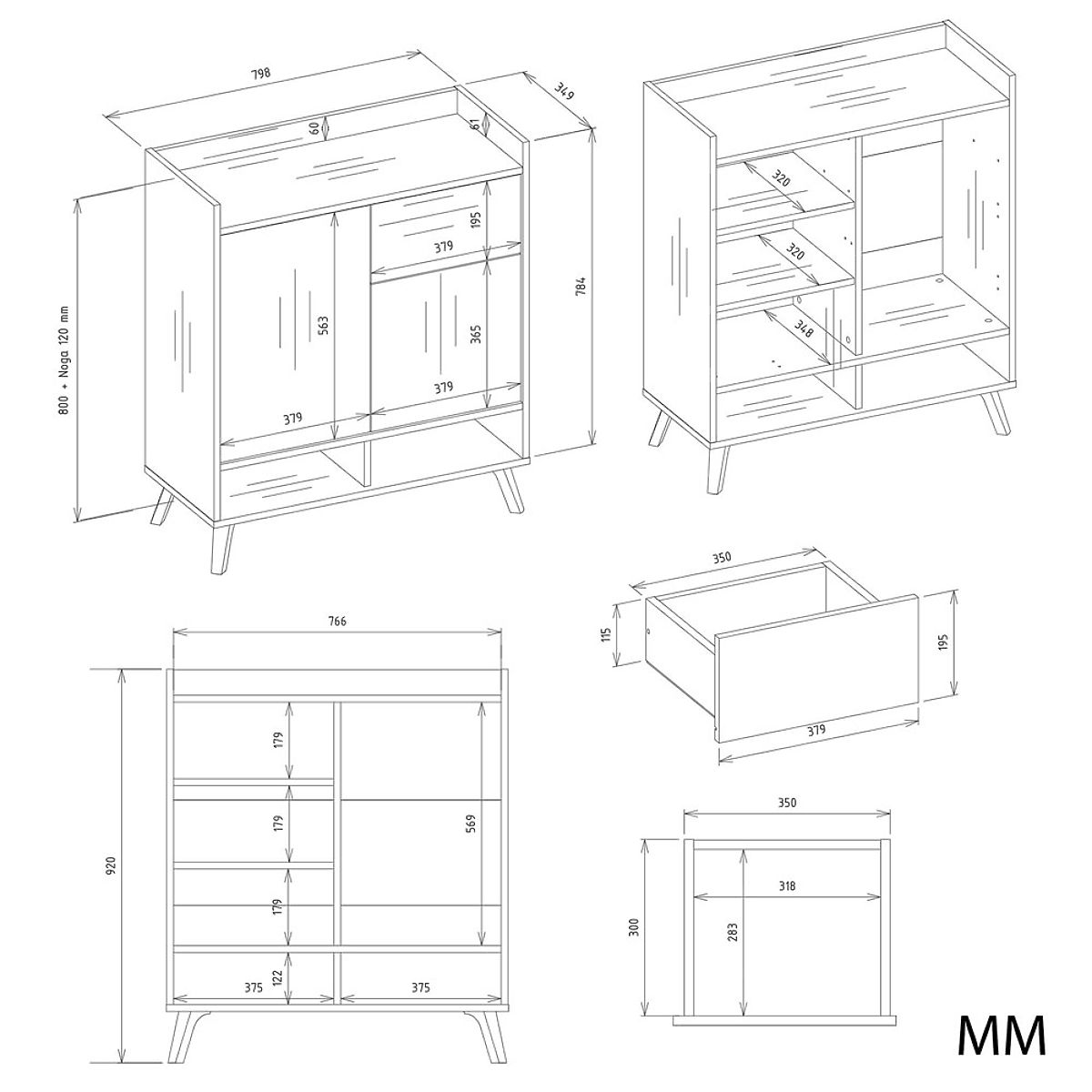 Jednoduchý tvar, čelá bez úchytiek a vysoké nohy v škandinávskom štýle dodávajú komode ľahkosť a moderný charakter.